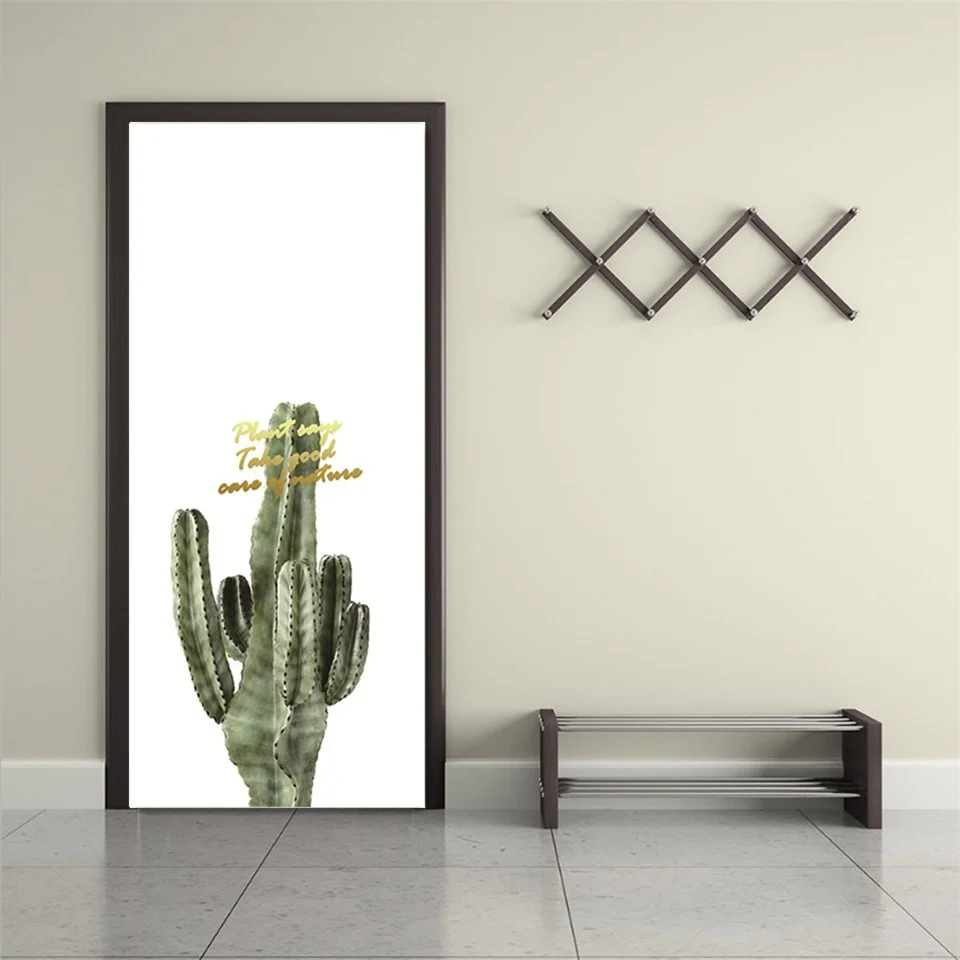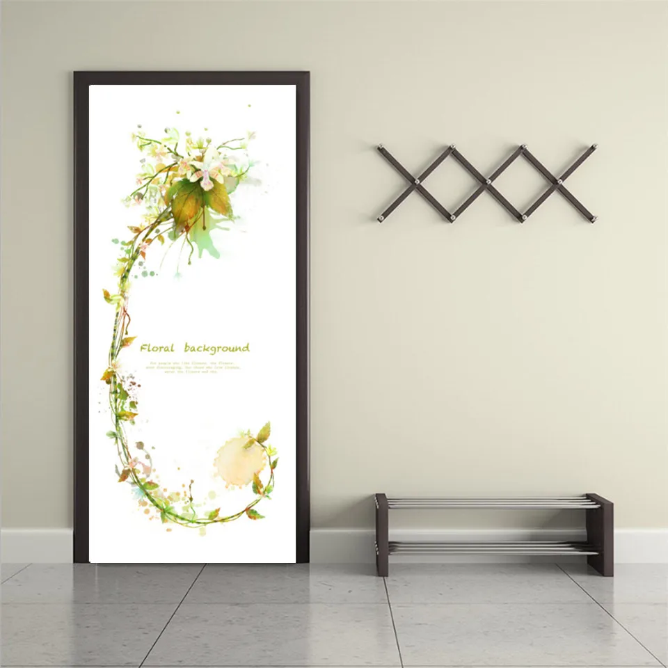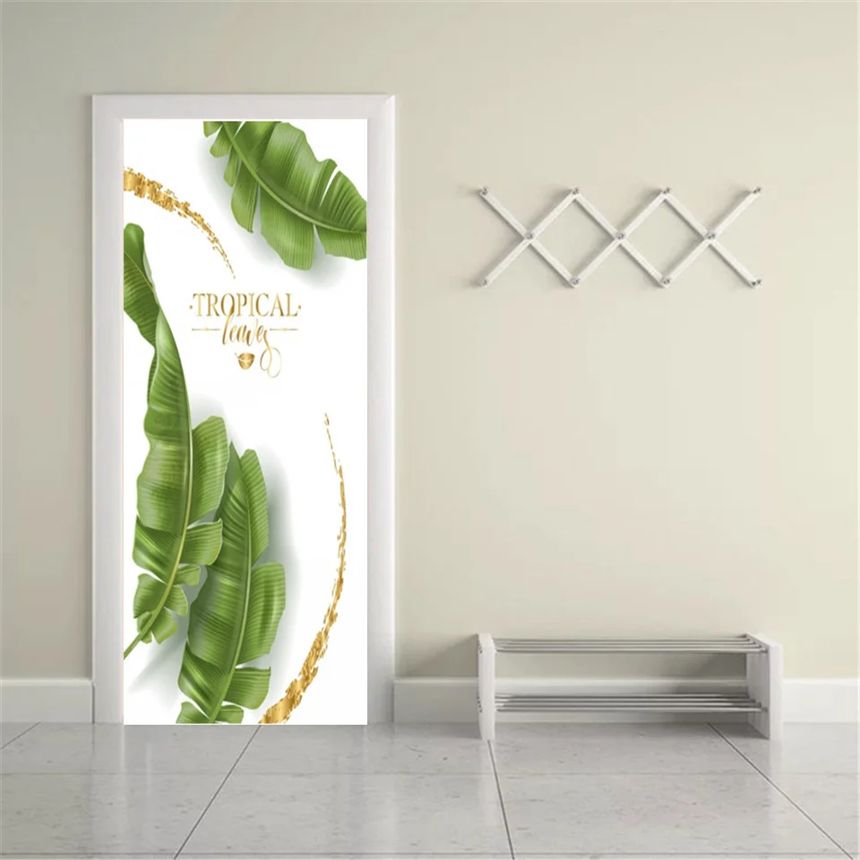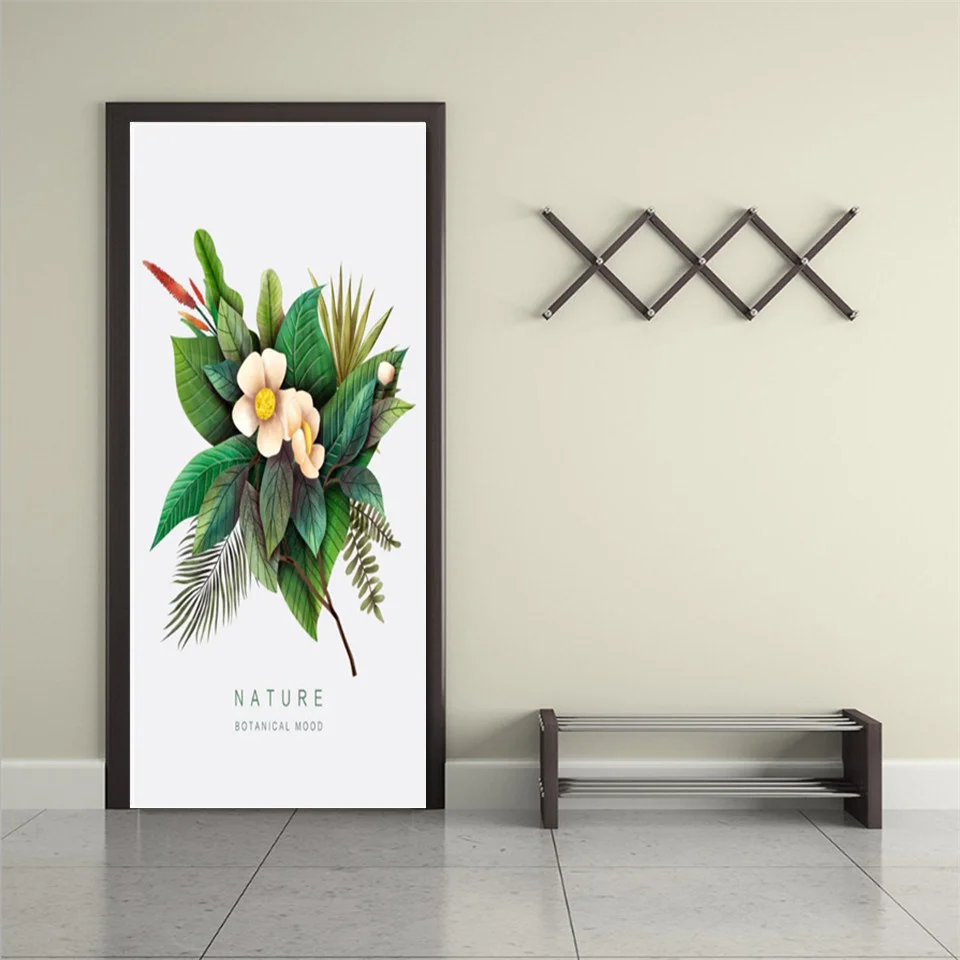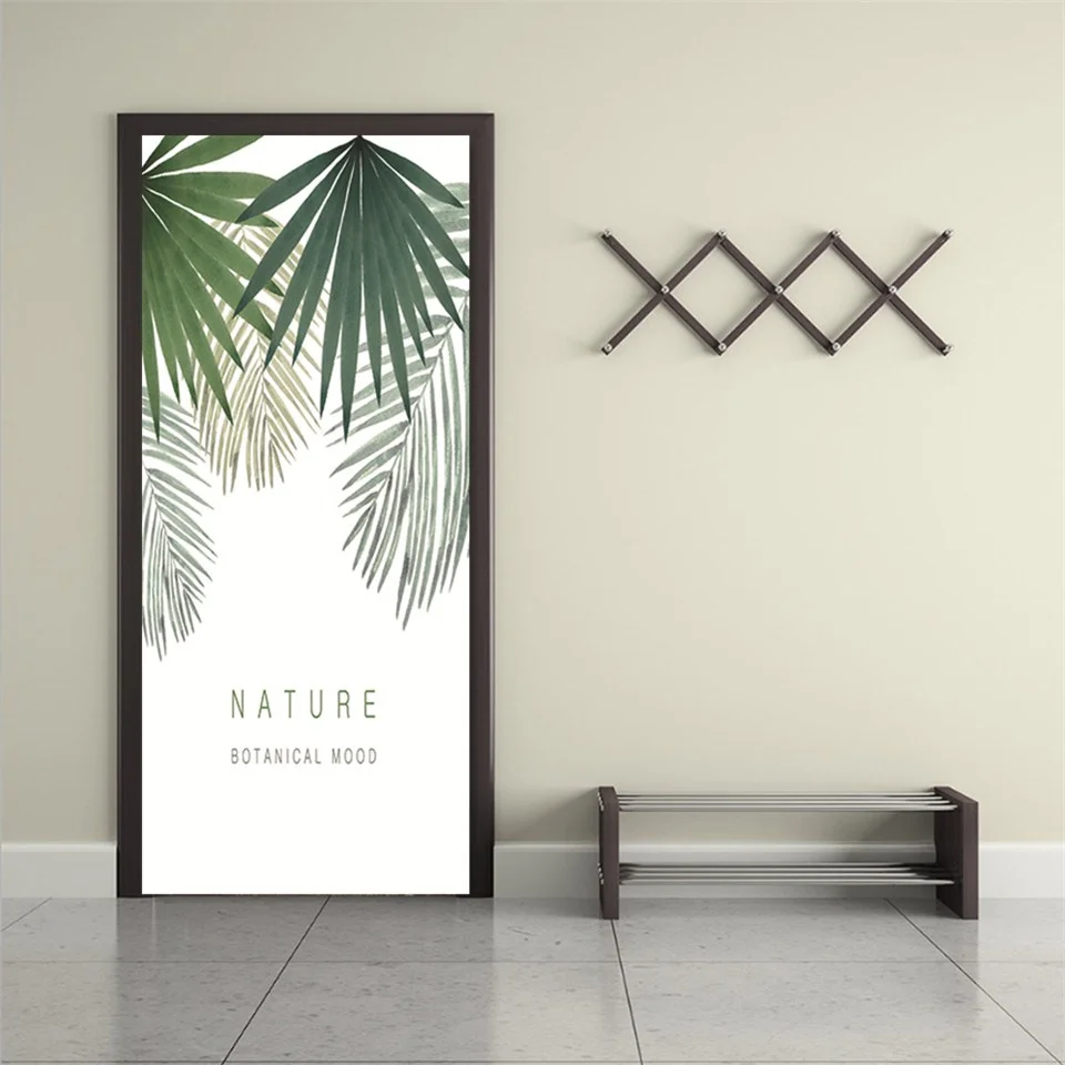 Простая наклейка на дверь с зелеными растениями для украшения ванной комнаты, спальни, самоклеящиеся обои, наклейка на стену, Индивидуальный размер, Постер для домашнего декора