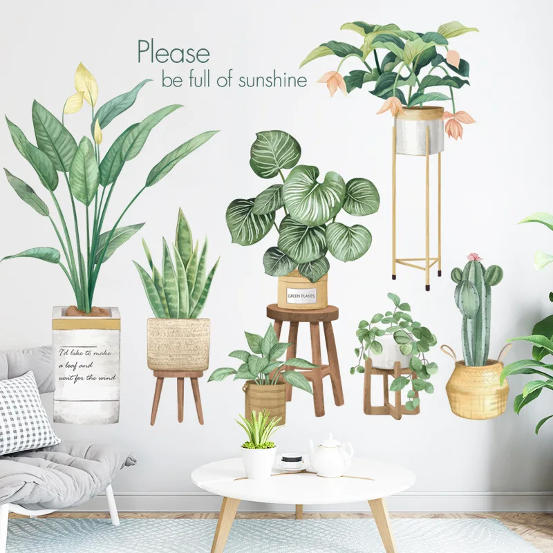 Зеленые комнатные растения 158*92 см, настенные наклейки для гостиной, спальни, дивана, телевизора, фоновый Декор на стену, художественное украшение для дома, художественные фрески