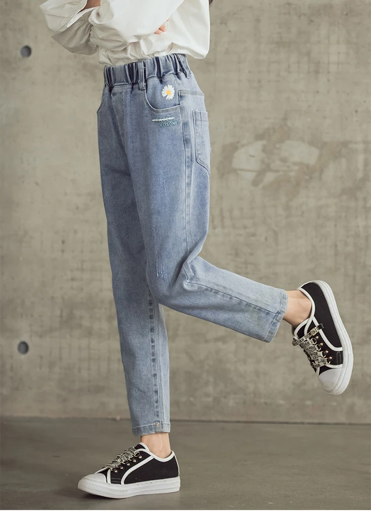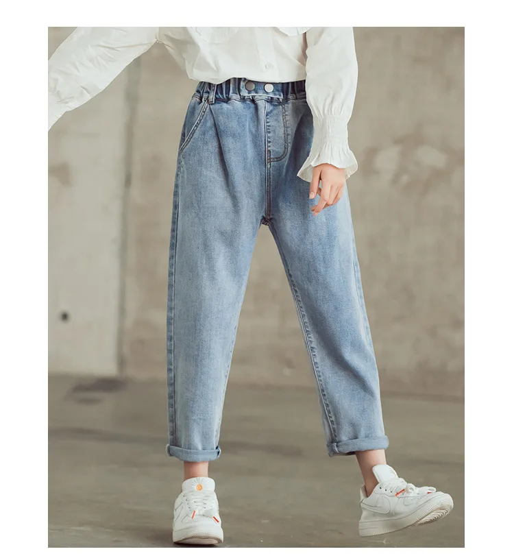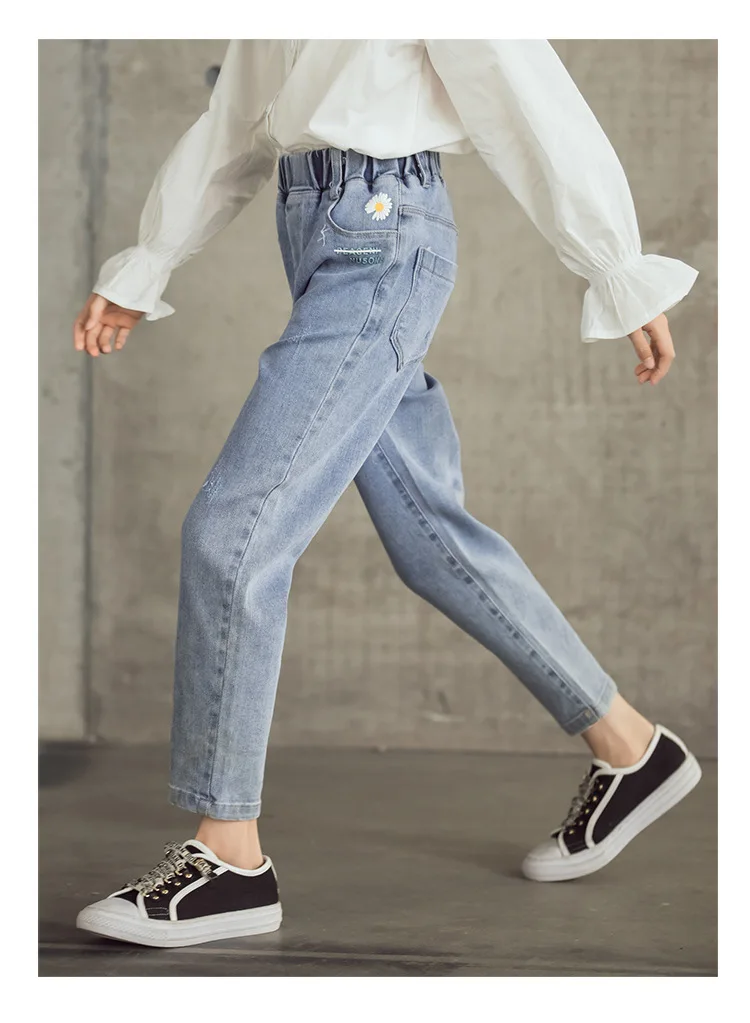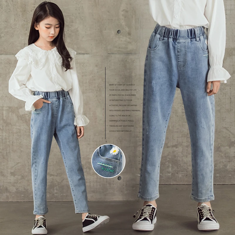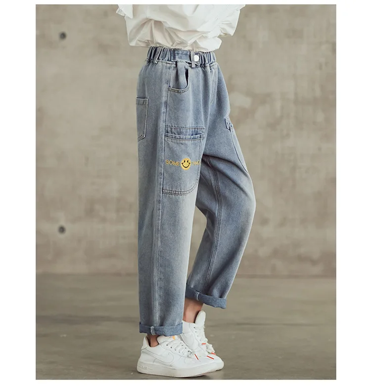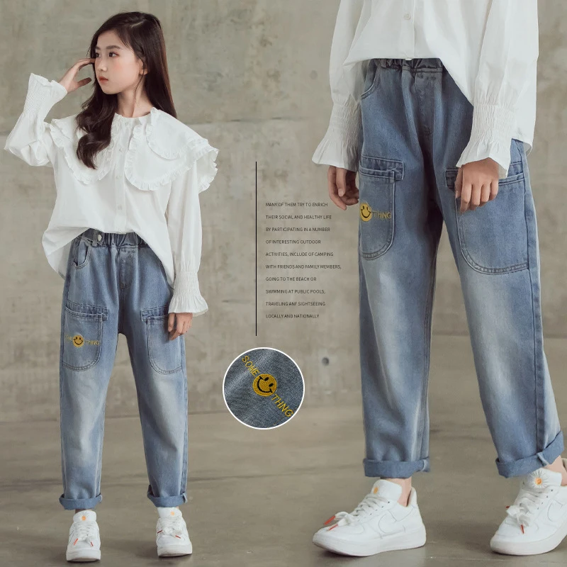 Джинсы для девочек-подростков Новинка 2022 года, весенние детские штаны модные свободные школьные брюки осенние модные джинсы детские штаны на возраст 12, 13, 14 лет