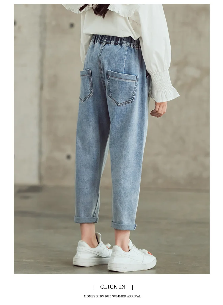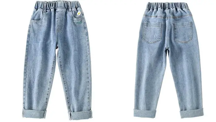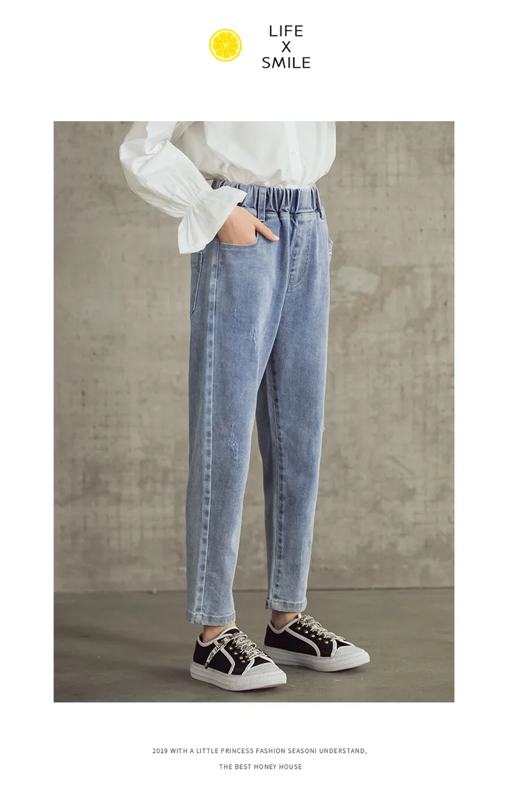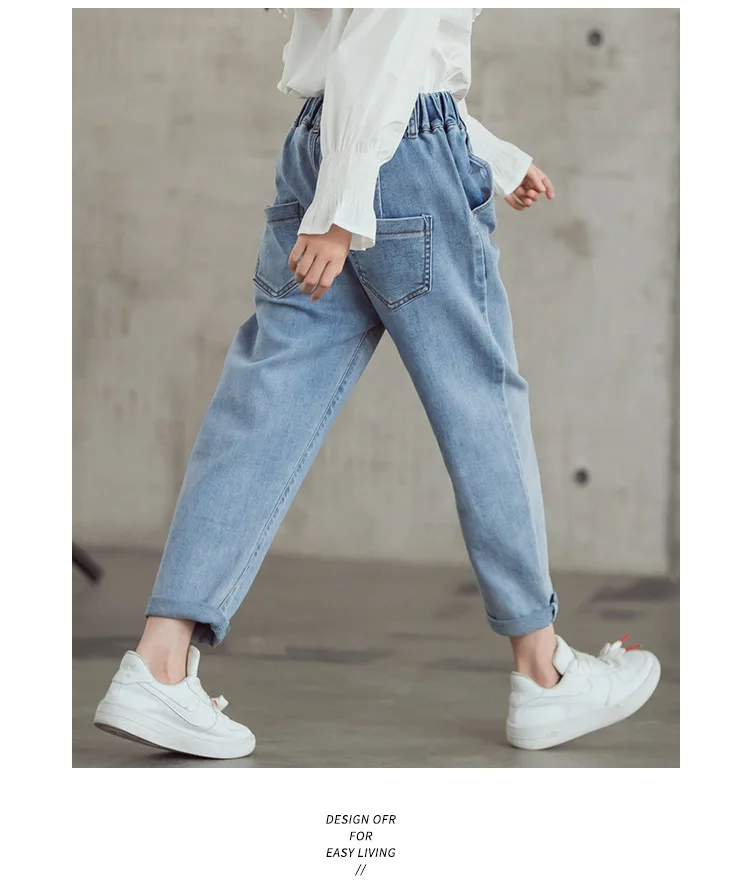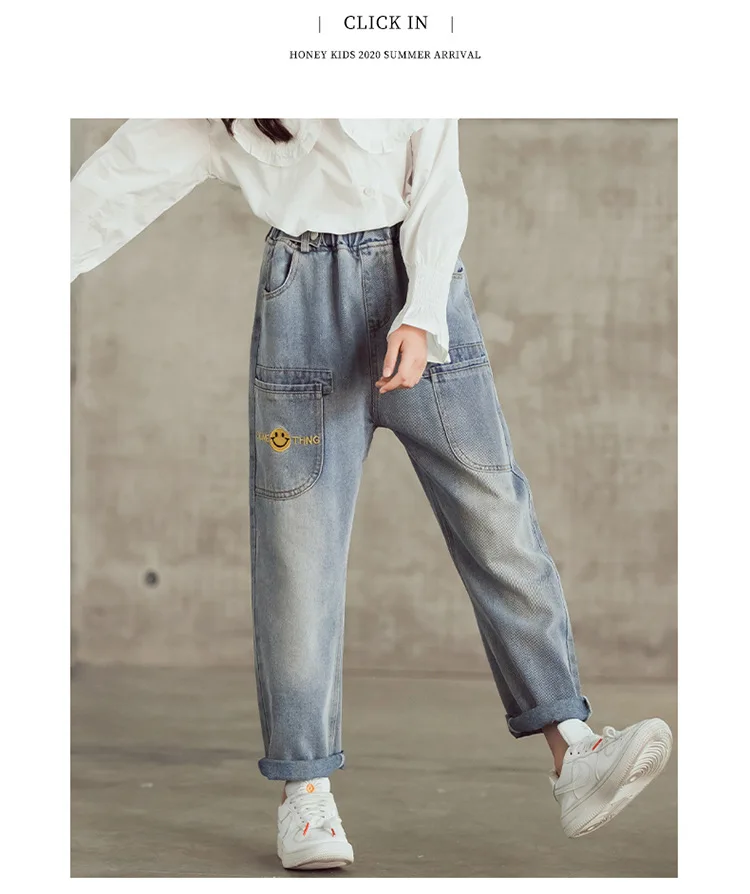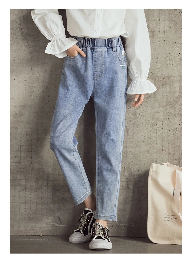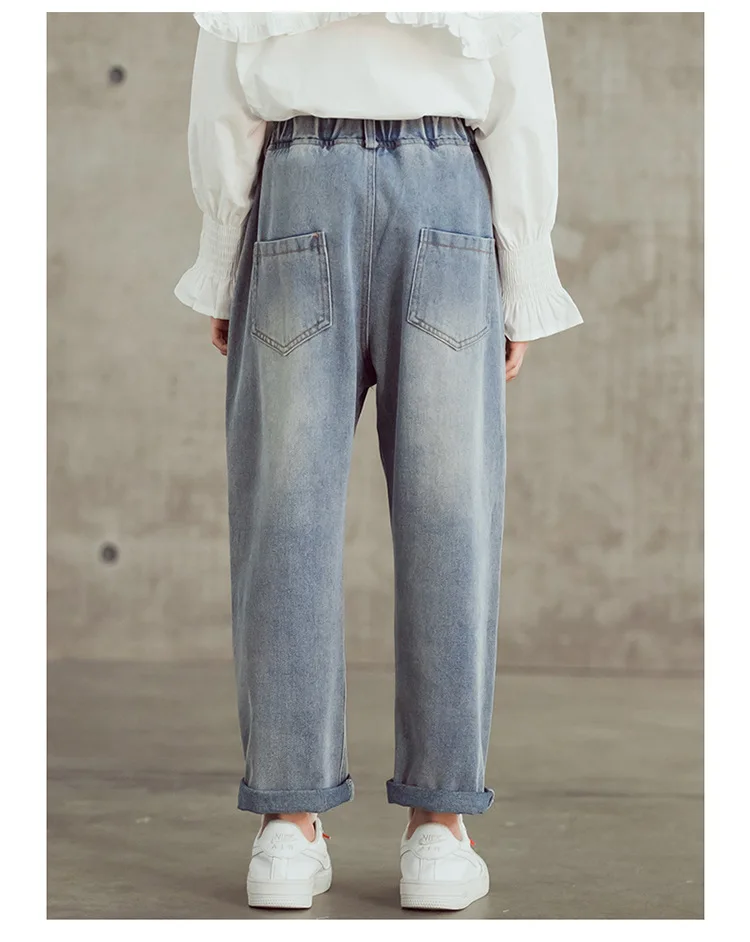 Джинсы для девочек-подростков Новинка 2022 года, весенние детские штаны модные свободные школьные брюки осенние модные джинсы детские штаны на возраст 12, 13, 14 лет