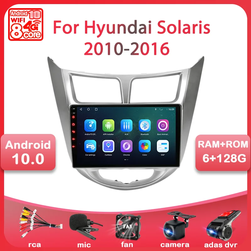 Автомагнитола на Android 10,0 для Hyundai Solaris accent Verna i25 2010-2016, мультимедийный видеоплеер, навигатор GPS, 2 din, стерео, DVD