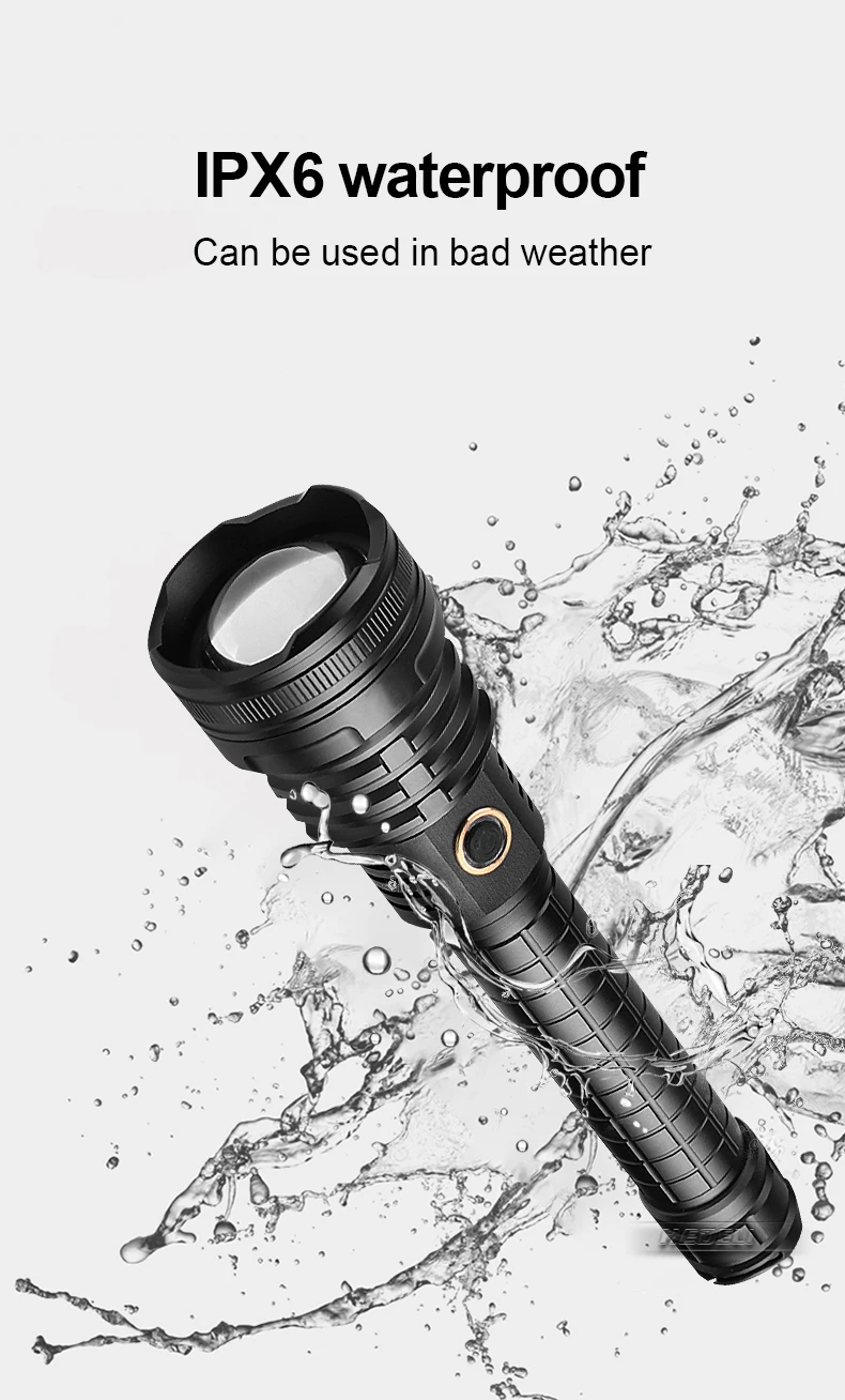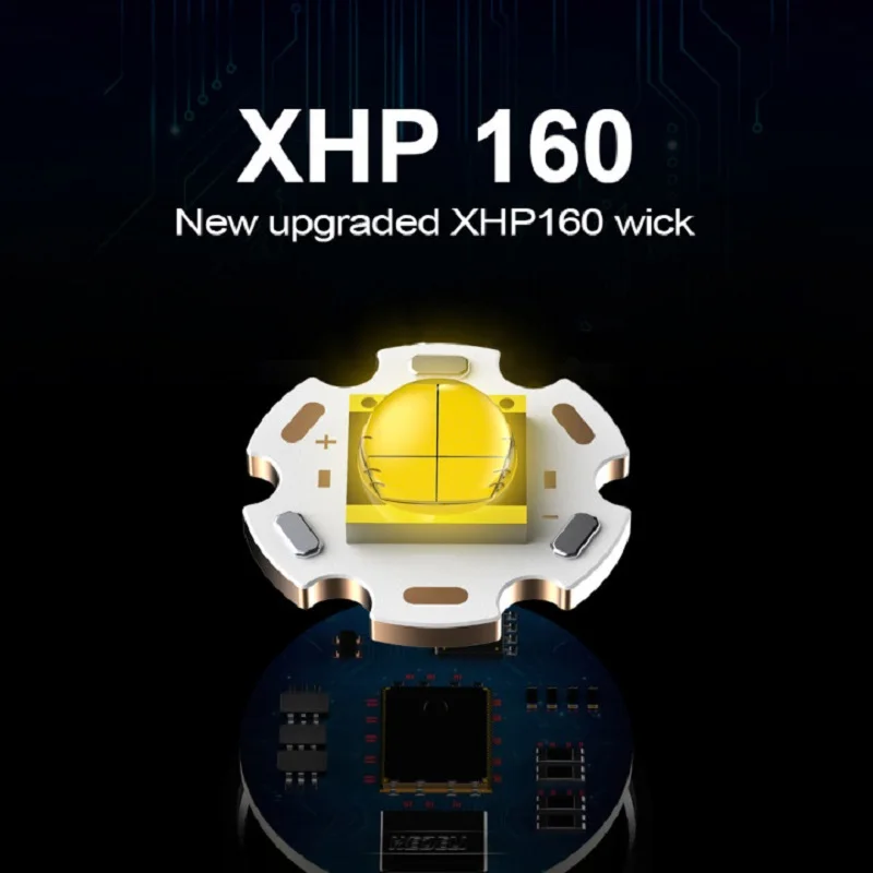 XHP160 использует 2*18650 батареи или 2*26650 батареи для длительного освещения часов. Водонепроницаемый, предотвращает брызги под разными углами, подходит для наружной среды и плохих погодных условий.