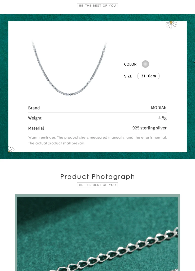 Цепочка Modian из серебра 925 пробы женская, классическое роскошное ожерелье с полностью прозрачным кубическим цирконием, массивное Ювелирное Украшение