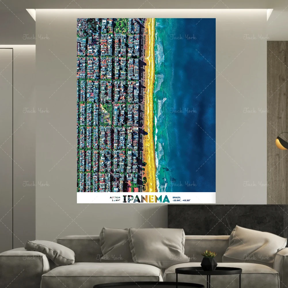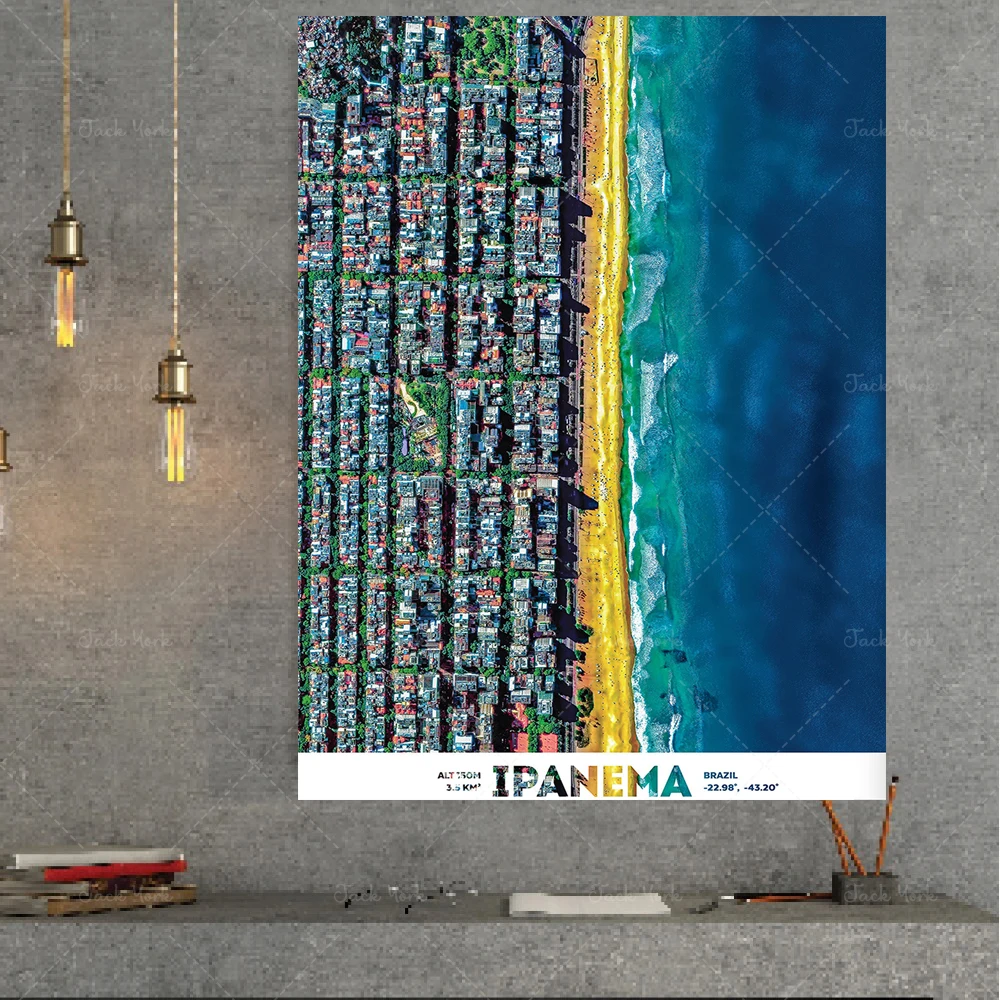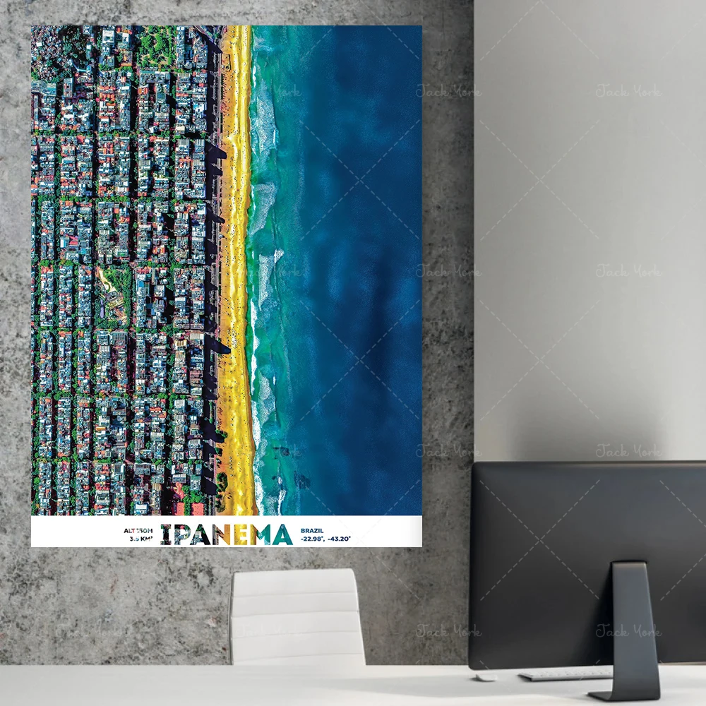 Пляжная спутная фотография Ipanema, Художественная печать Земля из космоса, Современный художественный плакат, домашний декор, офисное настенное искусство, присутствие