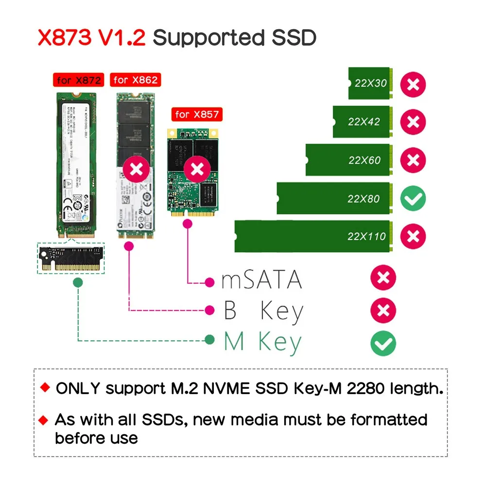 1 x X873 NVMe M.2 SSD щит (не включая NVMe M.2 SSD)