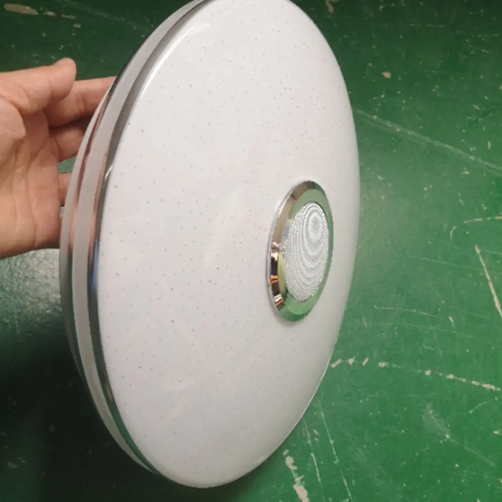 2. Регулируемая Яркость: мобильное приложение и Беспроводная связь могут регулировать яркость, менять цвет, пульт дистанционного управления может включать и выключать светильник, регулировать яркость и цвет, воспроизводить песни и регулировать громкость. Этот умный потолочный светильник изменит вашу концепцию, потолочный светильник s, как верный спутник, он позаботится о вашем настроении.