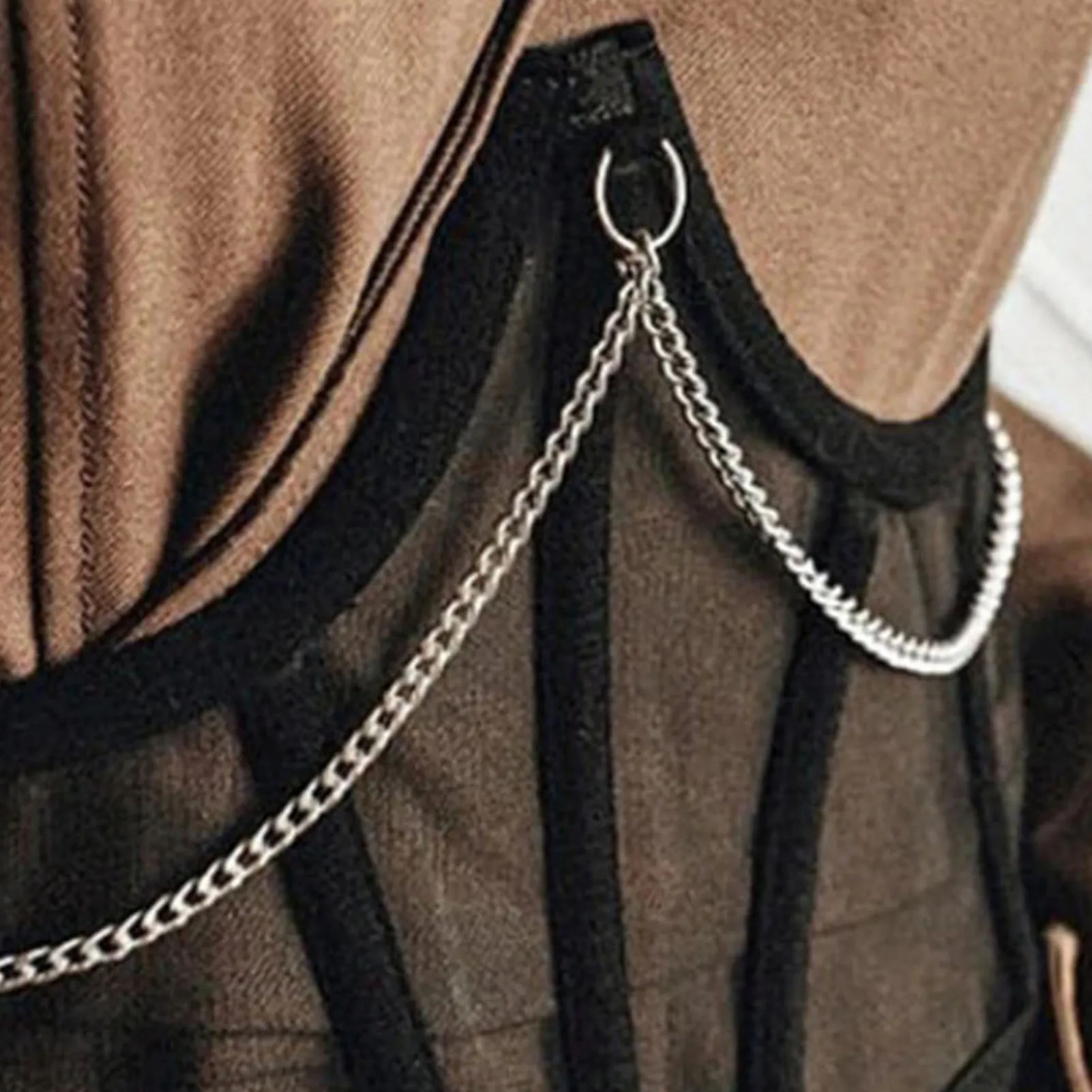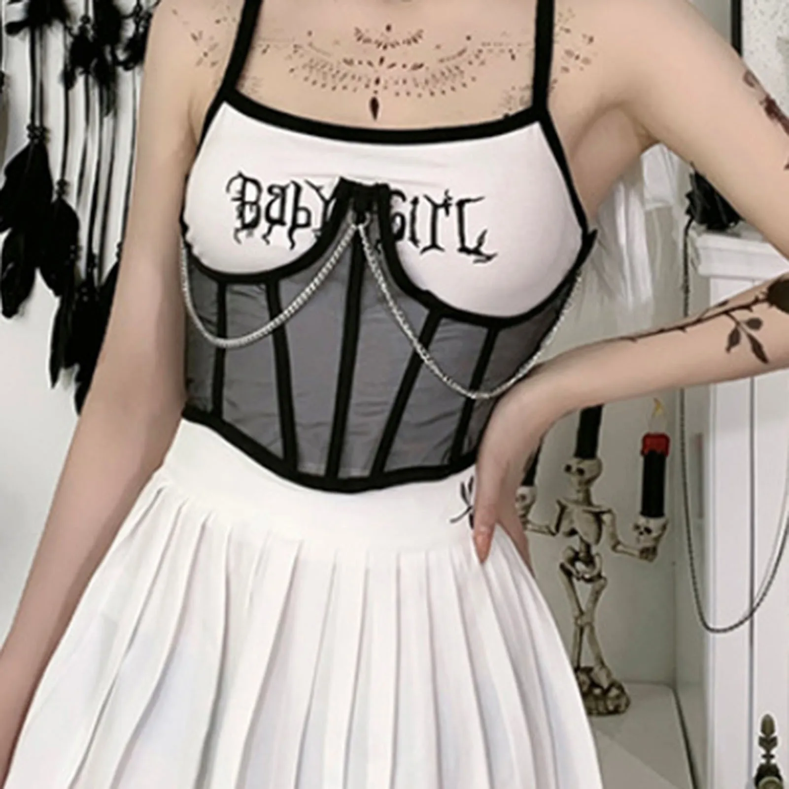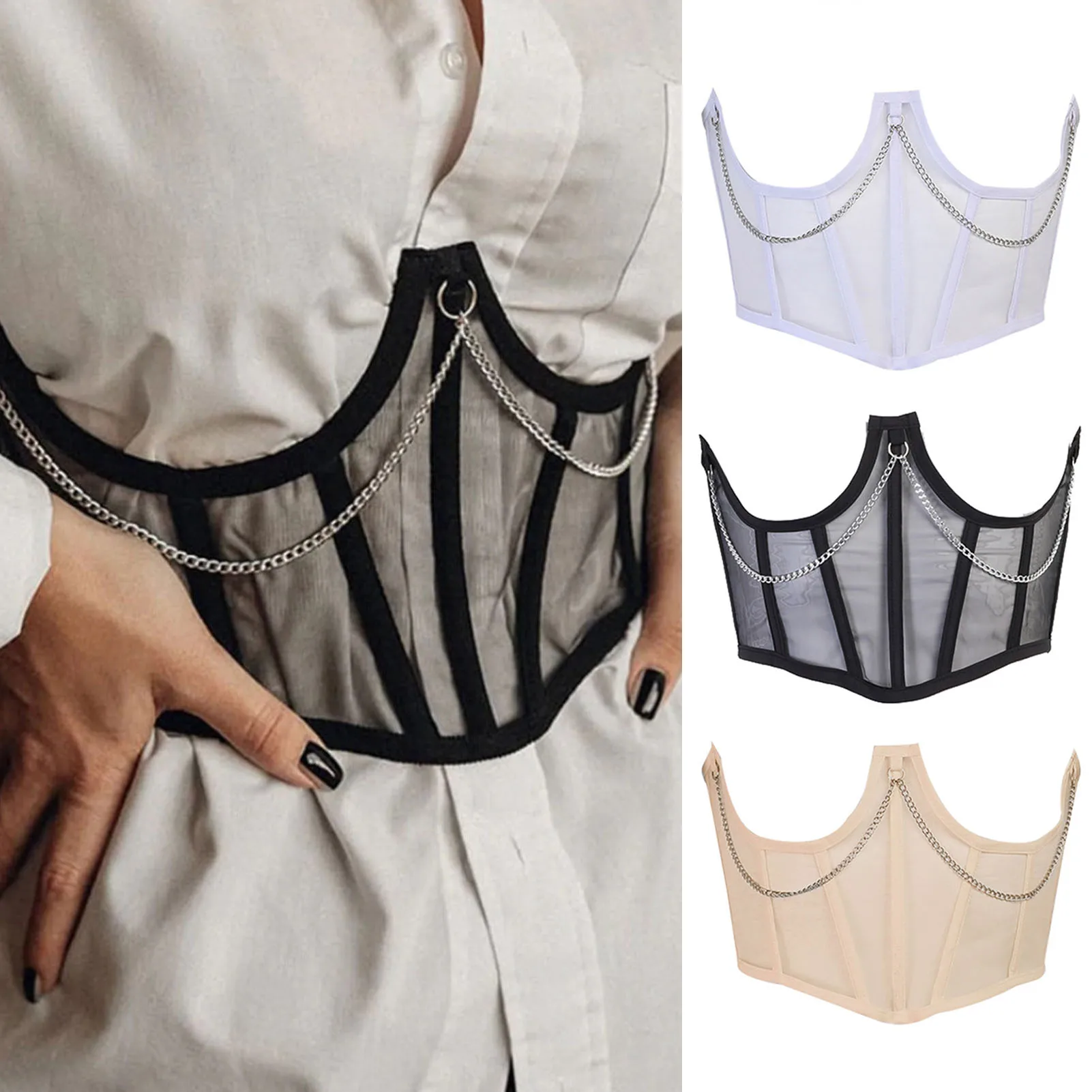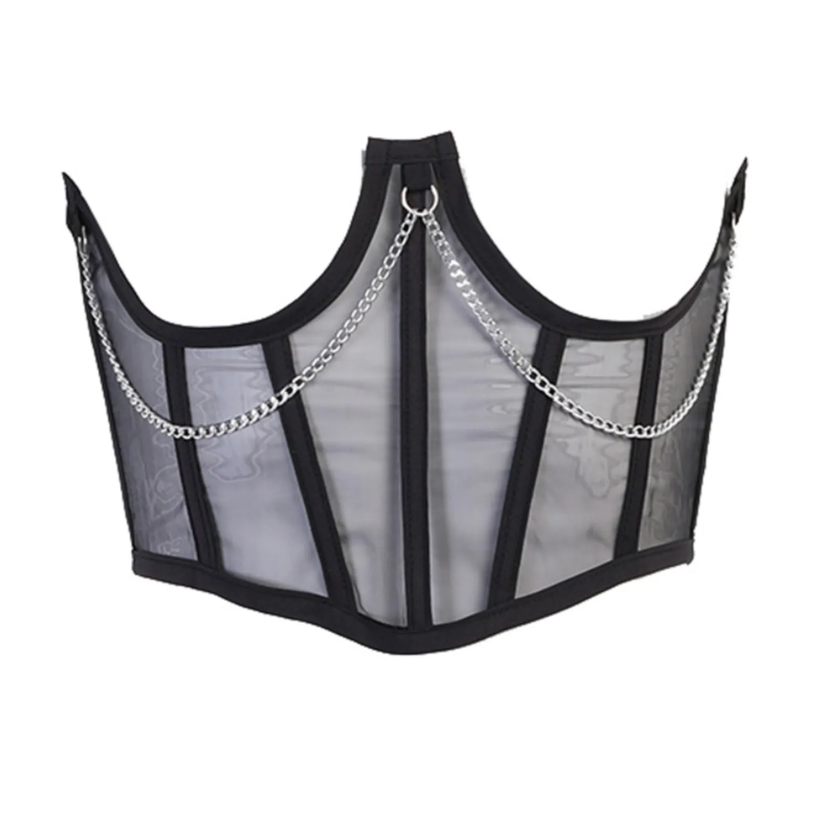 Корсет женский с металлической цепочкой, винтажный сетчатый прозрачный корсет с завышенной талией в готическом стиле, в стиле Харадзюку, черный