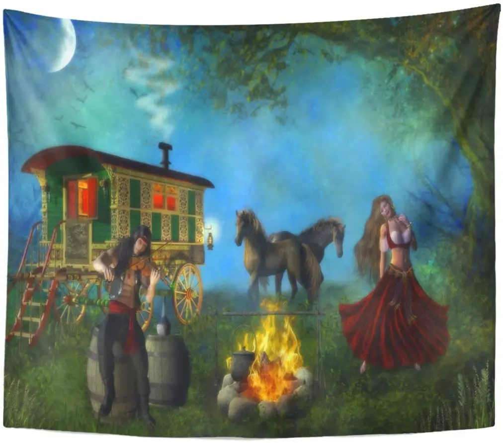 Романи Цыганская пара их фургон лошади домашний декор настенная подвеска