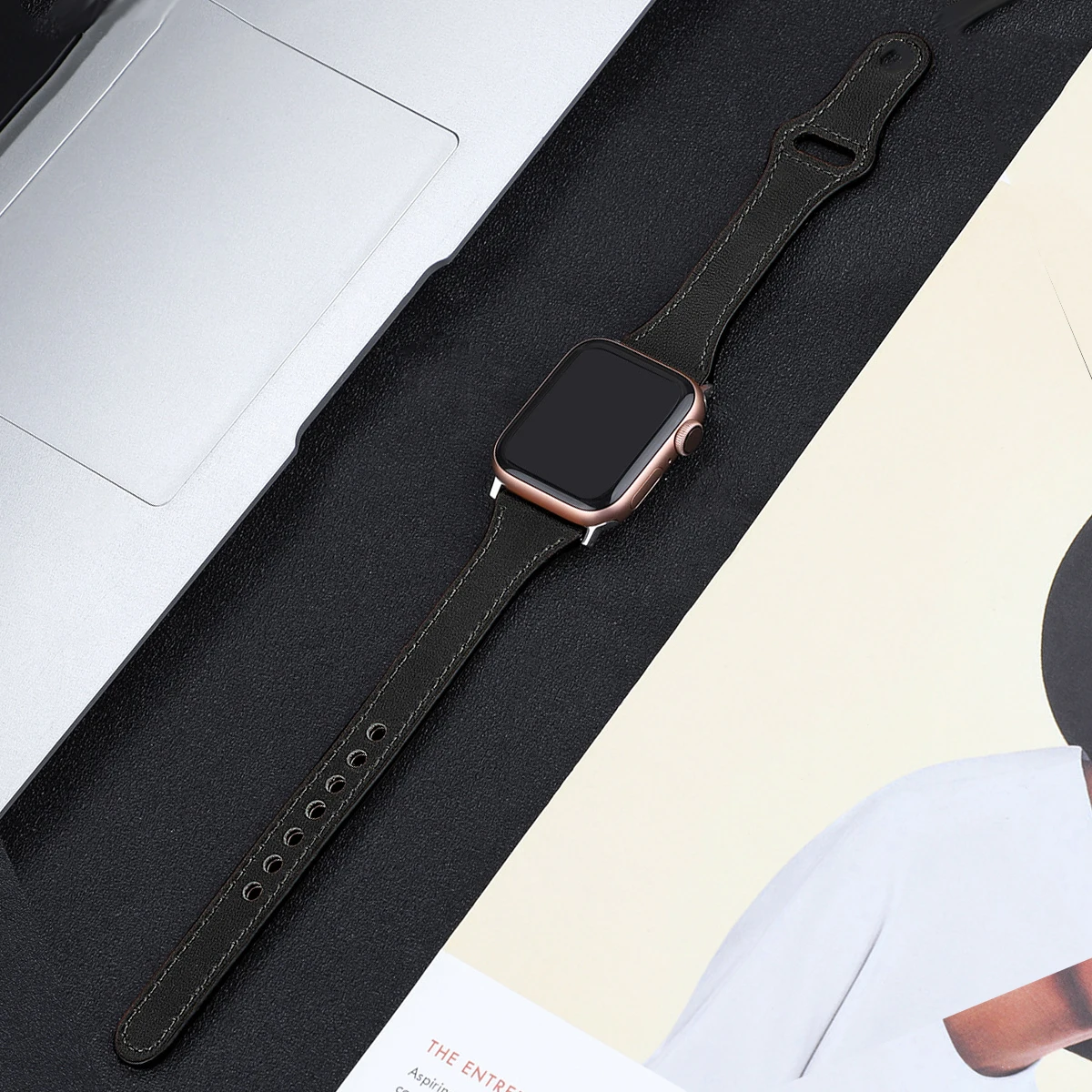 Ремешок кожаный женский для Apple Watch 7 6 SE, тонкий браслет для ...