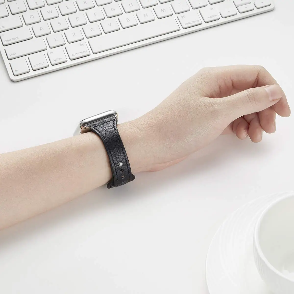 Кожаный ремешок для Apple watch 40 мм 44 мм тонкий ремешок для iWatch 38 мм 42 мм serie 3 4 5 se 6