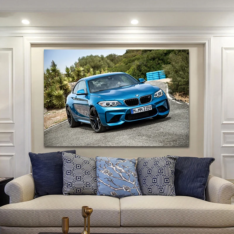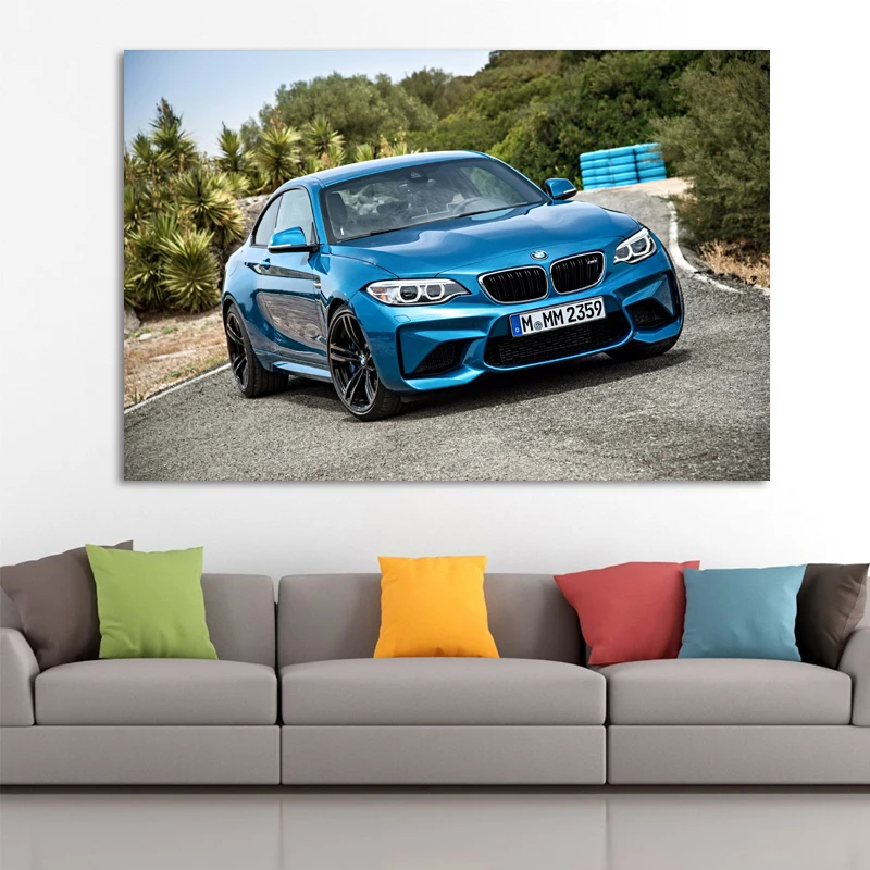 Настенные художественные плакаты B M W M2 Blue Sport Car Supercar, тканевые картины на холсте для декора гостиной