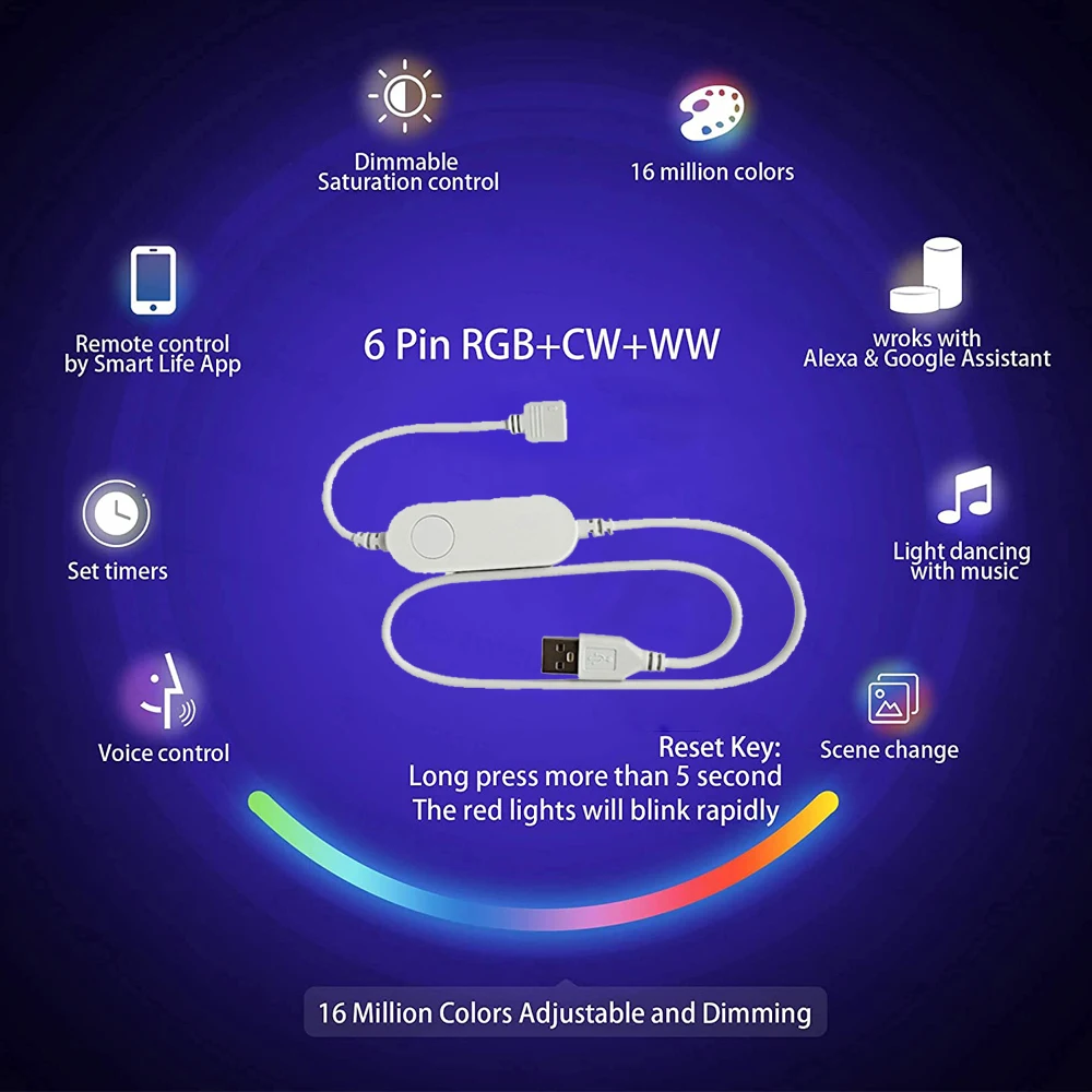 Название продукта: WIFI USB RGB RGBCCT контроллерНапряжение: DC5VВыход: Макс. 2а/канал, общая мощность макс. 5АРазъем: RGB 4PIN, RGBCCT 6PINРазмер: 28x24x11.5мм