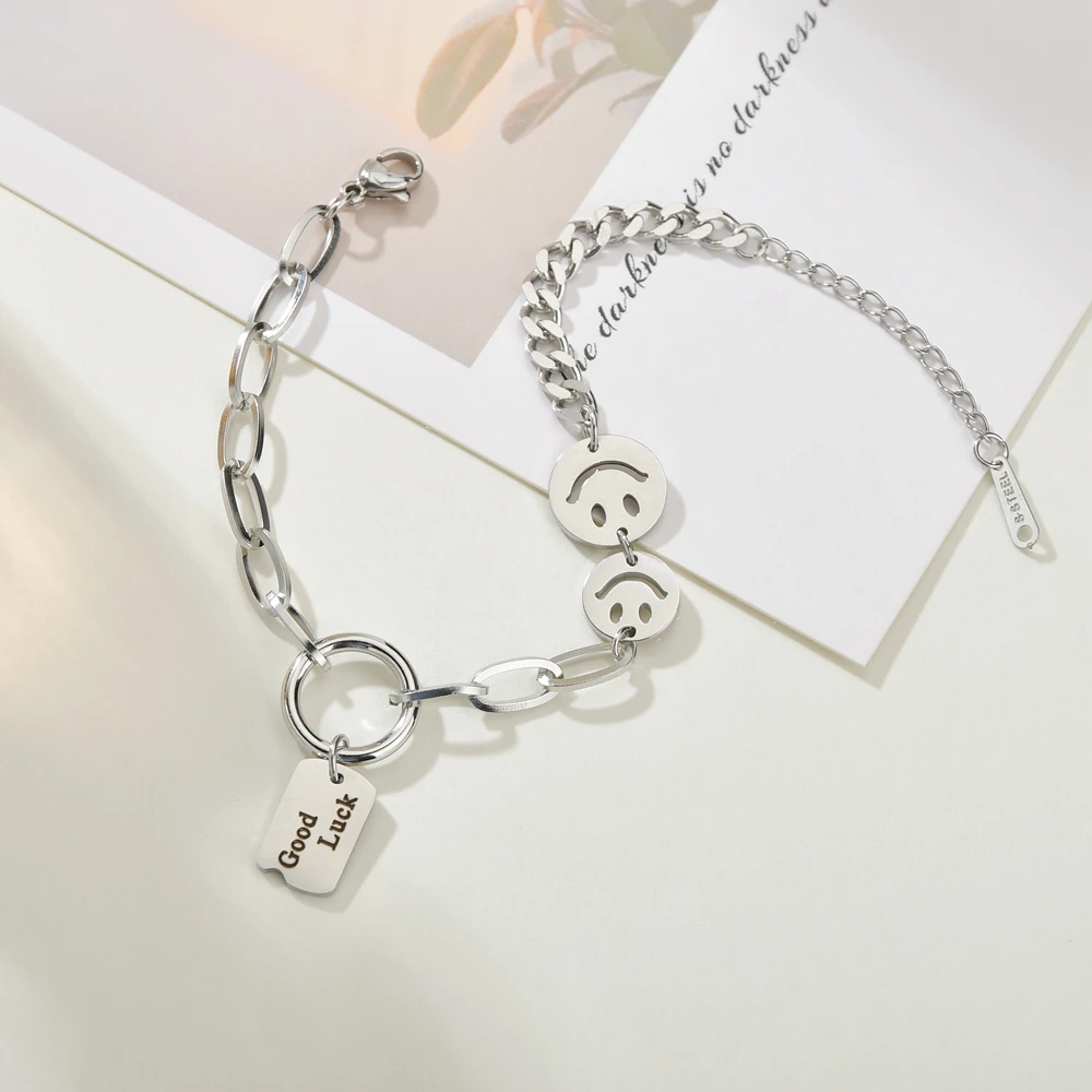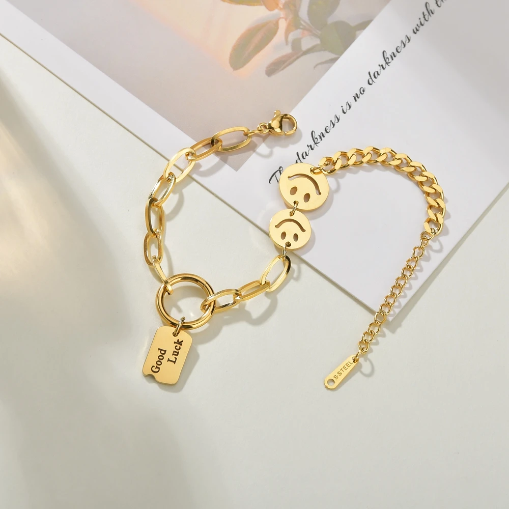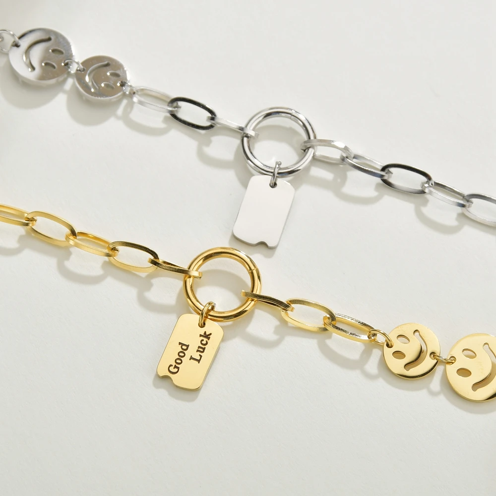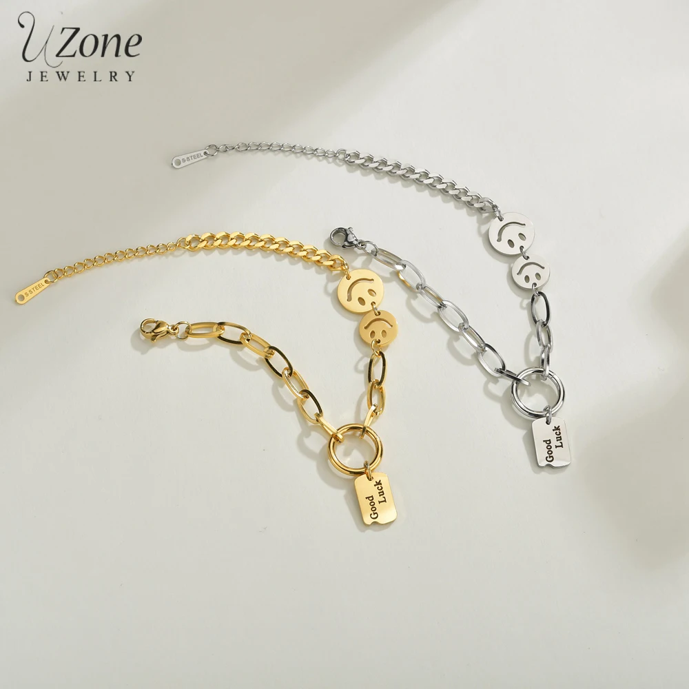 UZone браслеты из нержавеющей стали с толстой цепочкой два Смайла на заказ гравировка имя браслет для женщин девушки фестиваль вечерние ювелирные изделия подарок
