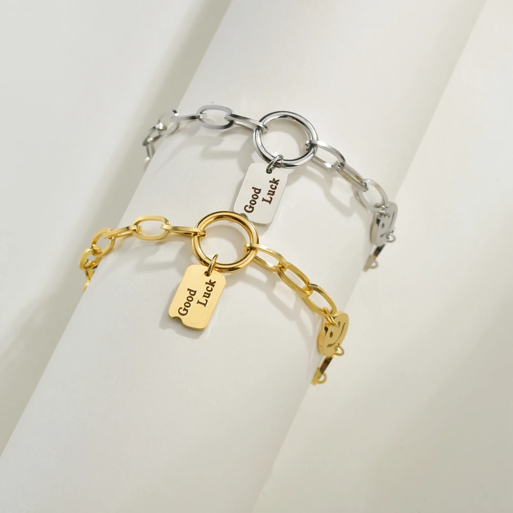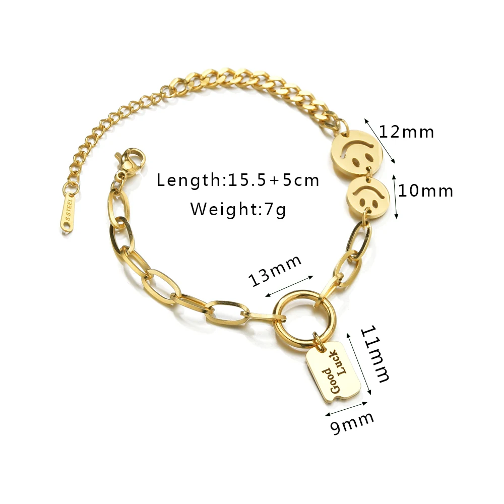 Uzoneбыл из нержавеющей стали толщиной цепи браслеты два смайлик на заказ Выгравируйте имя браслет для женщин и девочек фестиваль вечерние ожерелья подарок