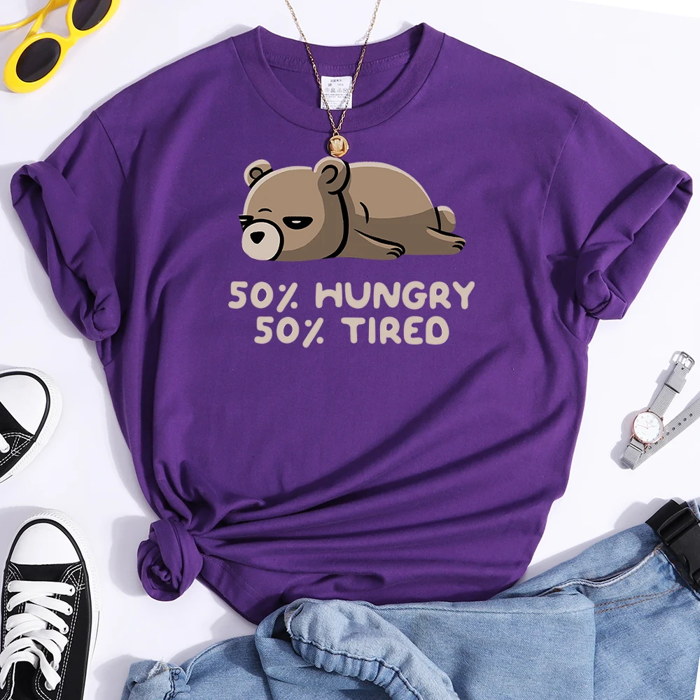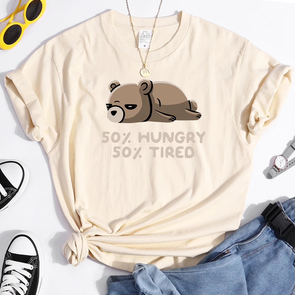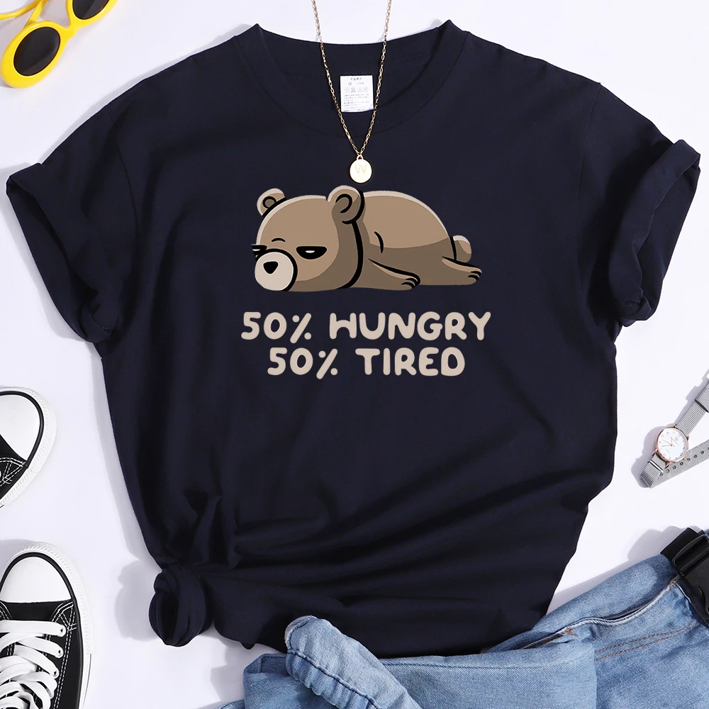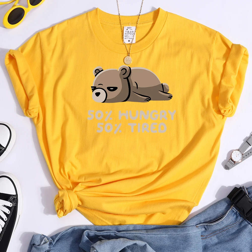 Милый Енот Футболка женская 50% голодных 50% усталости с героями мультфильмов одежда с рисунками животных; Женские дышащие свободные уличная одежда в стиле хип-хоп с круглым вырезом, футболка