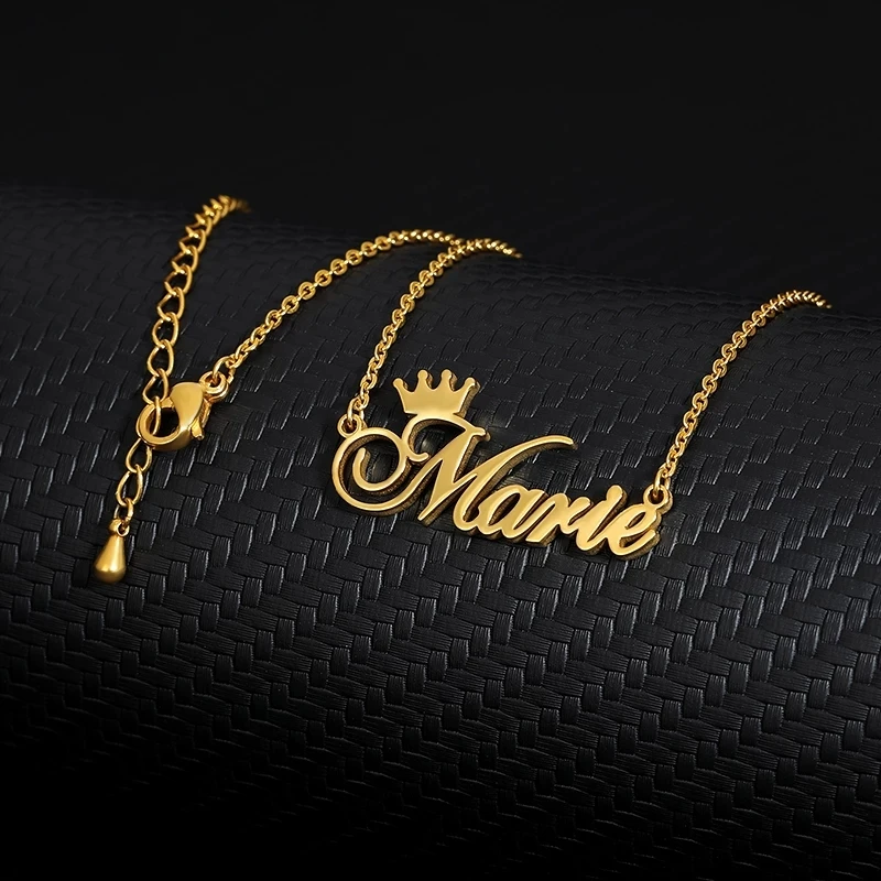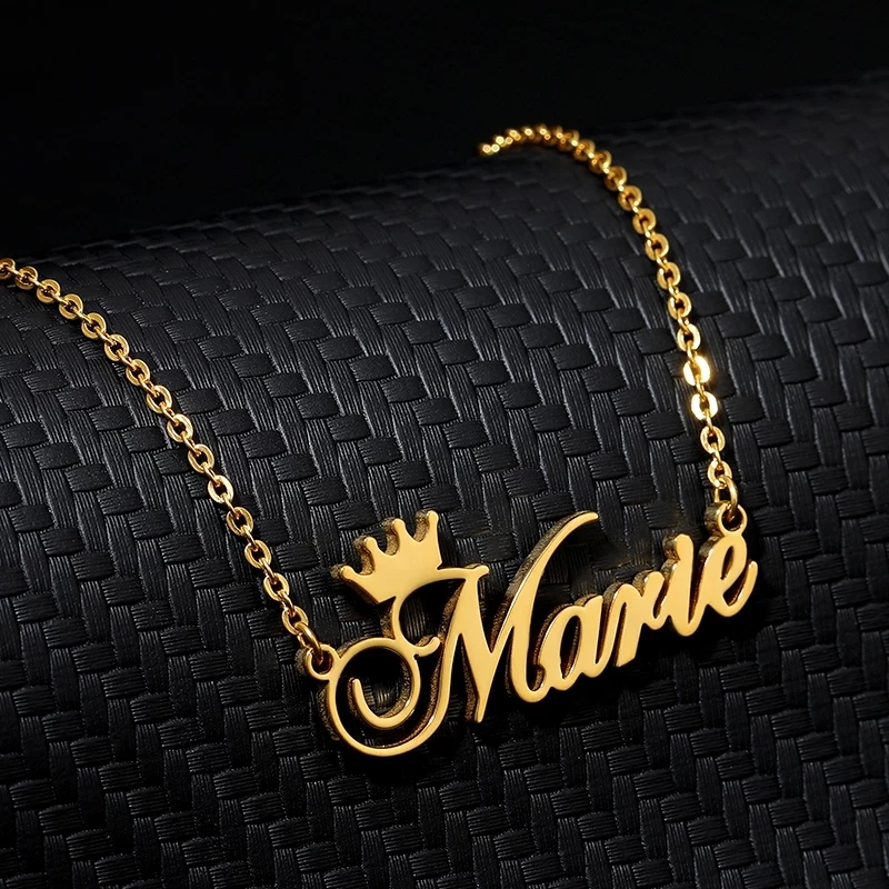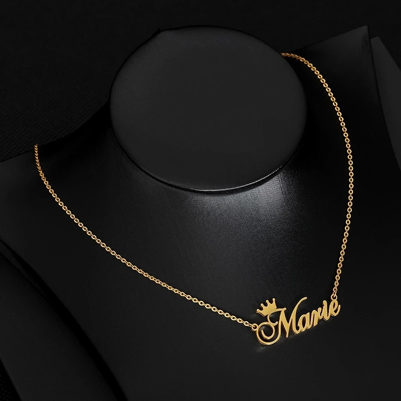 Ожерелья с именем короны на заказ, ожерелье с именной табличкой для женщин, персонализированные золотые ожерелья из нержавеющей стали с надписью, Индивидуальные ювелирные изделия