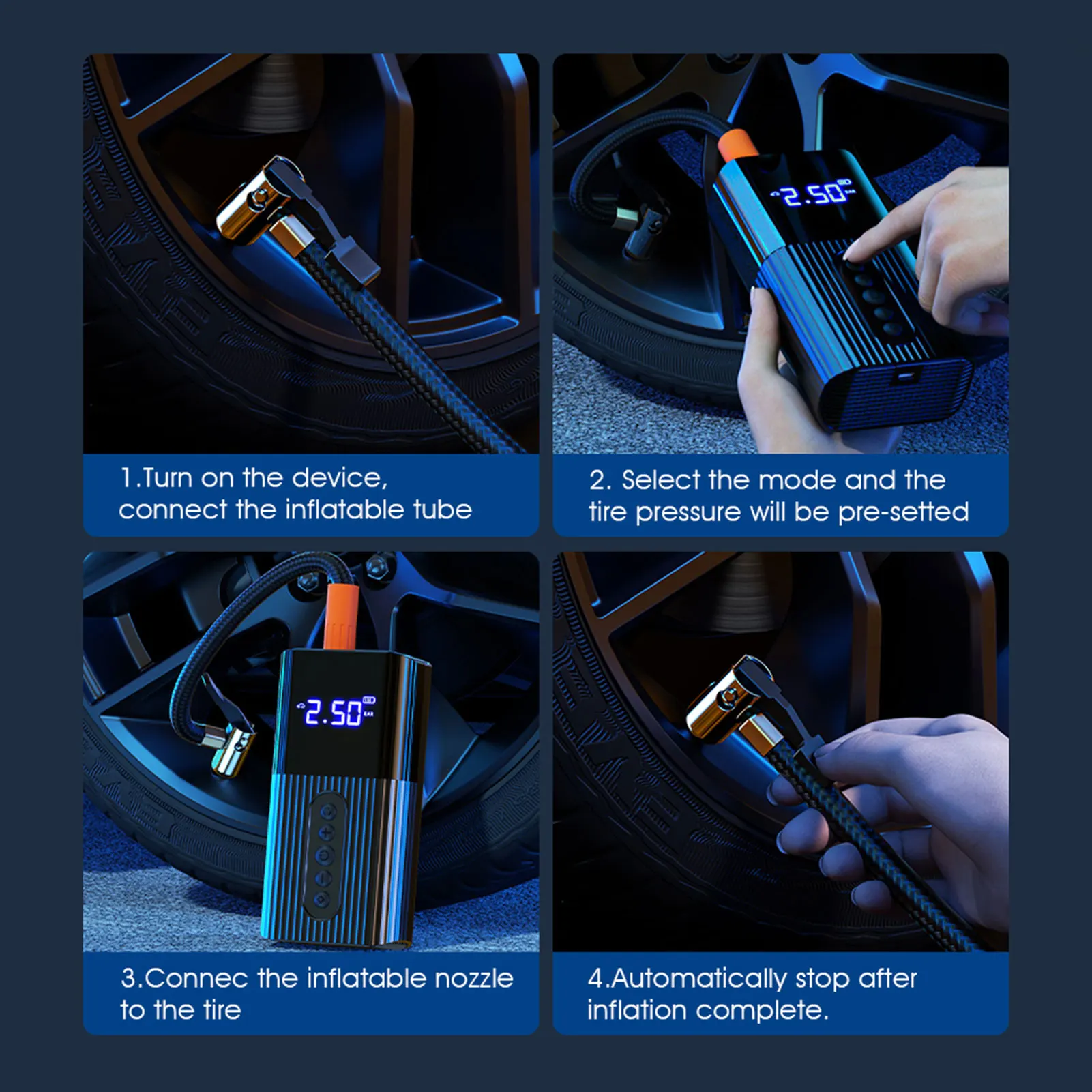 4. Multi-function Car Pump: This wireless portable pump is suitable for all tires of bicycles, motorcycles, and automobiles (including SUV). It is also equipped with 3 nozzle adapters, so it is also suitable for mattresses/airships/toys/sports balls/inflatable products.