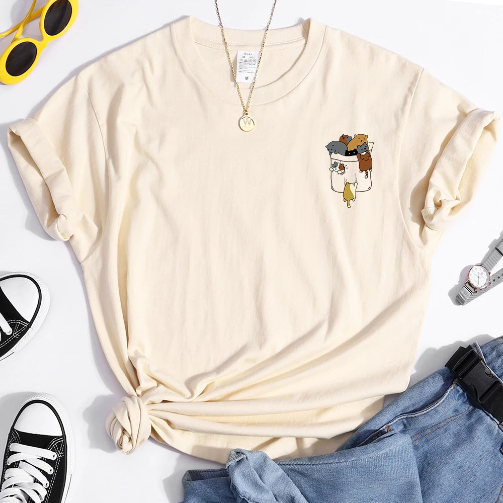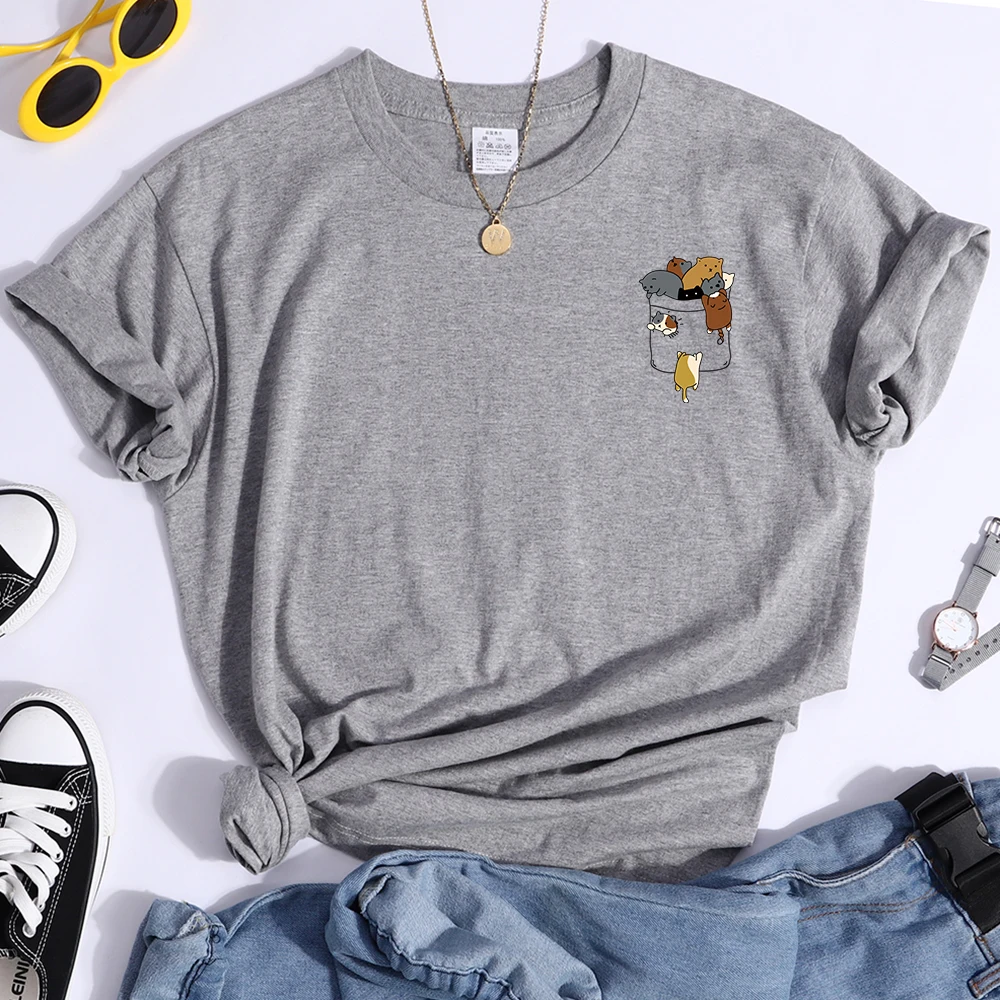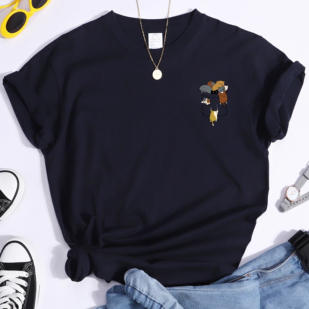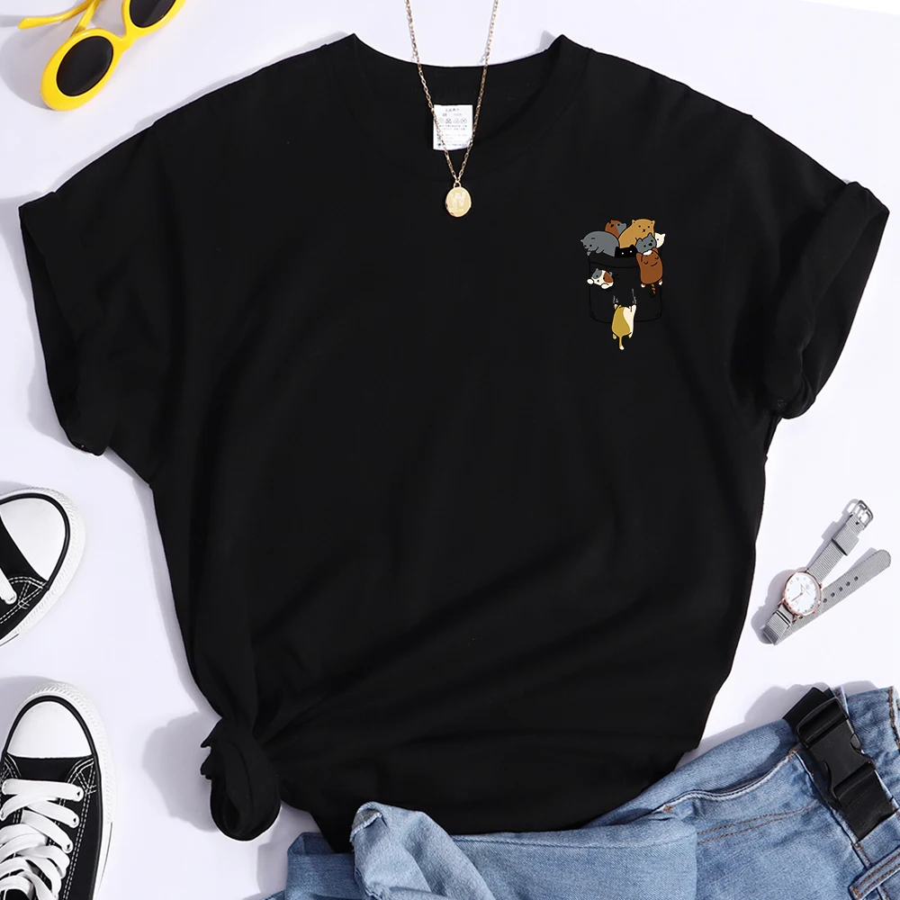 Футболка женская оверсайз с карманами, милый Повседневный Топ с мультяшным животным, уличная одежда в стиле Харадзюку, уличная одежда с коротким рукавом