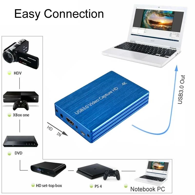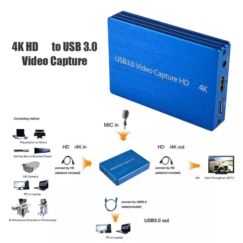 Карта видеозахвата 4K USB 3,0, совместимая с HDMI, HD видеозаписывающее устройство 1080P для PS4, телефона, игровой блок, ПК, прямая трансляция