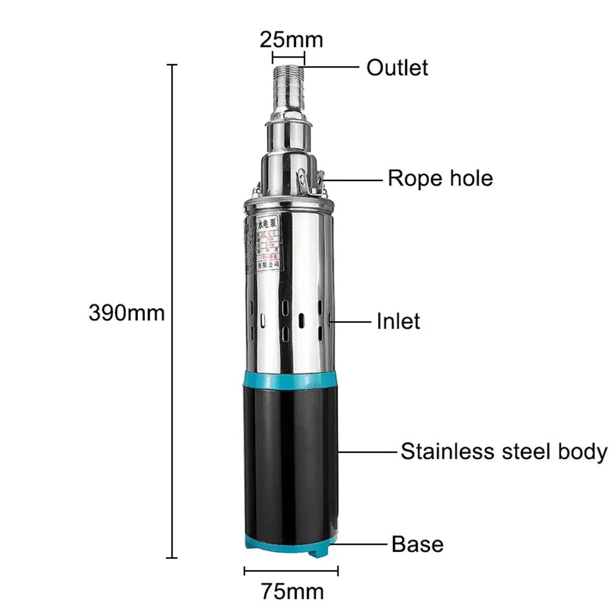 Особенности:-Двигатель из чистой меди-Безопасная изоляция-Сильная мощность-DC Дайвинг-Хороший эффект отключения звука-Рабочее колесо из нержавеющей стали: Центробежное рабочее колесо, более мощное, быстрая скорость, эффективно увеличивает поток головки-Это нетоксичный, не загрязняющий, бесшумный Солнечный водяной насос-Насос имеет встроенный контроллер и прост в установке. Он может подключить насос непосредственно к солнечной панели.-Подходит для использования на кораблях, рыбацких лодках, рыбных прудах, сельскохозяйственных орошениях и т. д.-Он использует мощность автомобиля, энергосбережение и защиту окружающей среды.-Изготовлен из нержавеющей стали, коррозионная стойкость, термостойкость, высокая температура.-Высокий Подъем, большой поток, малый размер, легко носить с собой. Спецификация:Материал: нержавеющая стальНапряжение: 12 В/24 В постоянного токаНоминальная мощность: 180 ВтПиковая мощность: 300 ВтНоминальный подъем: 25 мНоминальный расход: 3 м?/чДиаметр выхода: 25 ммВысота: 390 ммДиаметр: 75 мм Посылка включает в себя:1 х водяной насос