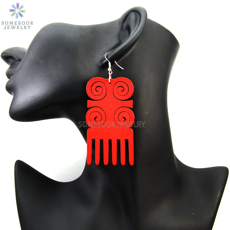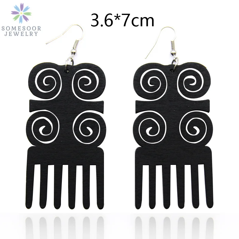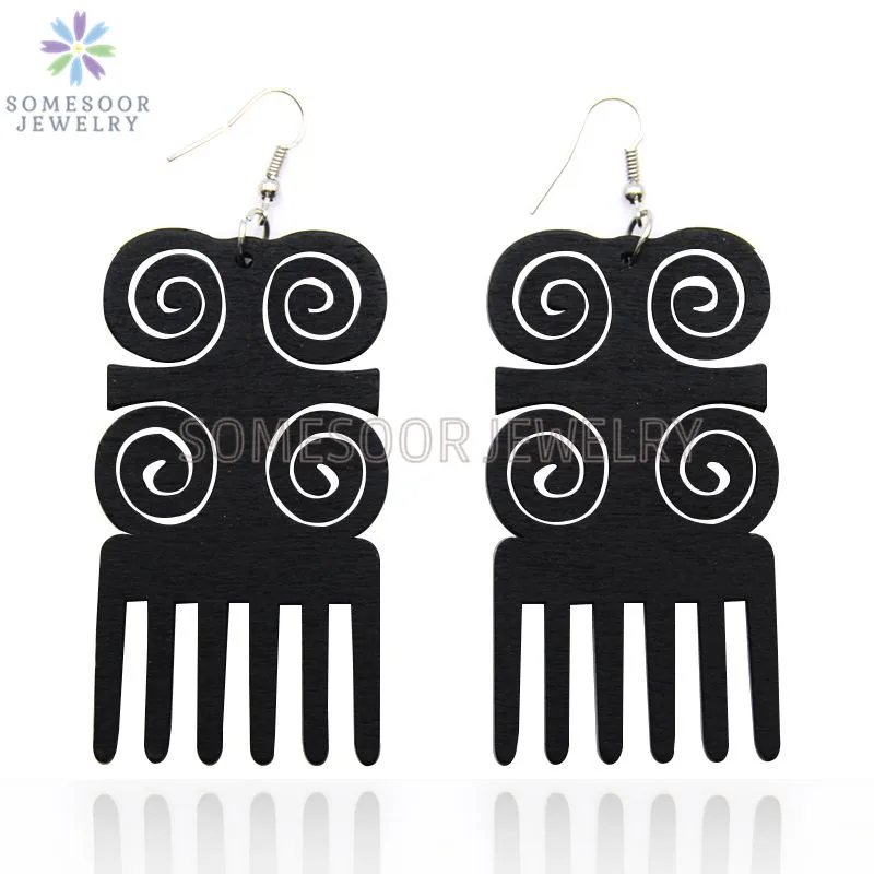 SOMESOOR гравировка африканские деревянные висячие серьги меланин В...