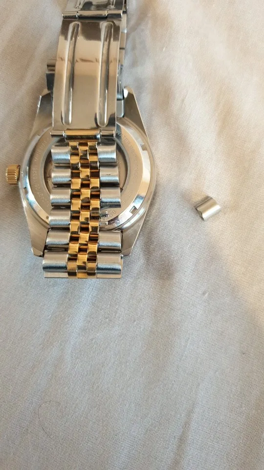 Очень точное описание, однако, не очень хорошо продуманное, кромки свободны и оторвутся, так как браслет движется вокруг вашего запястья, это покажет, что булавки держат их вместе, и вся вещь разваливается (прилагается изображение) Это только с некоторыми звеньями, но они те, которые не могут быть заменены, поэтому браслет становится бесполезным. Возможно, это был только мой, но я не могу с ним многое сделать. Конечные звенья являются специфическими для часов Seiko, а также бесполезными для большинства других часов, поэтому их нельзя использовать. Застежка хорошая и работает, но на ощупь низкая. Все приемлемо из-за цены, но не сами по себе, это неприемлемо.