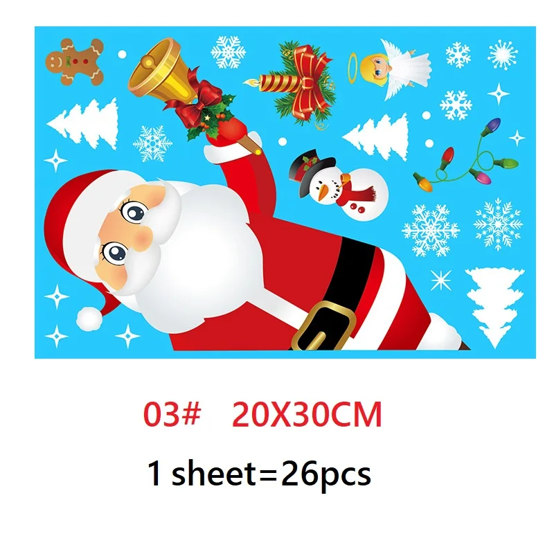 Параметры продукта: рождественские настенные наклейки(1) Материал: экологически чистый ПВХ(2) клиент получил размер панели изображения A:30x37 см, стиль B размер 60x74 см, стиль B Размер: 20x30 см.(3) Применение: стена, стекло, спальня, гостиная, ванная комната, Ресторан(4) узор: мультфильм, животное, с Рождеством