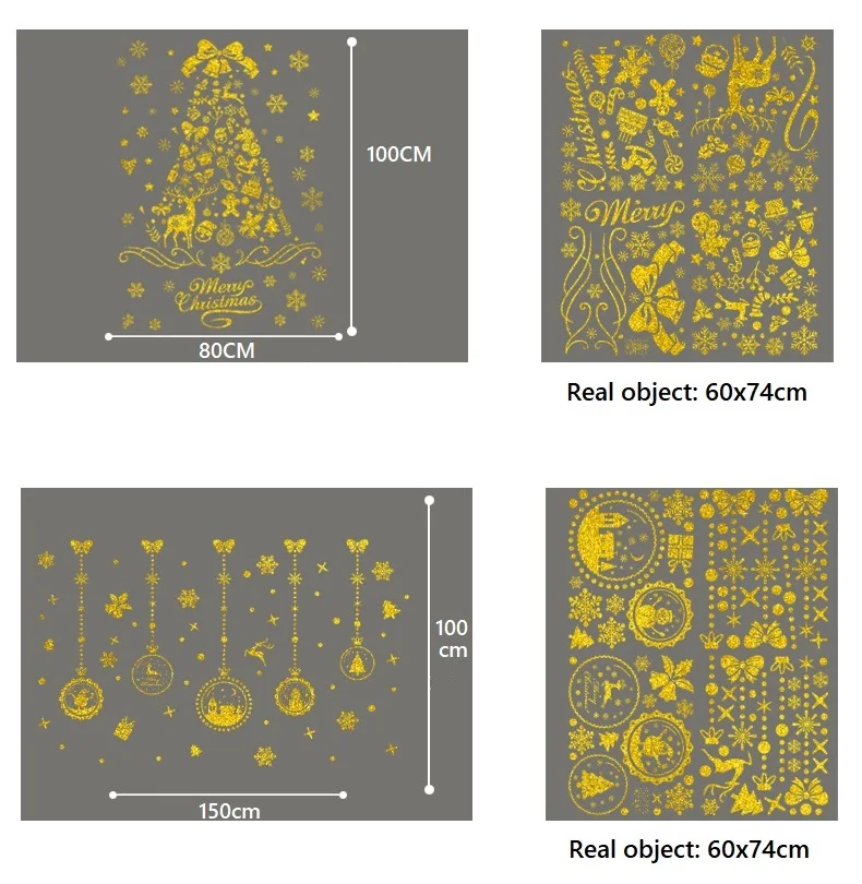 Новогодние наклейки на окно Блестящие Золотые снежинки электростатические наклейки на стекло декоративные наклейки на стену Санта Клауса украшения