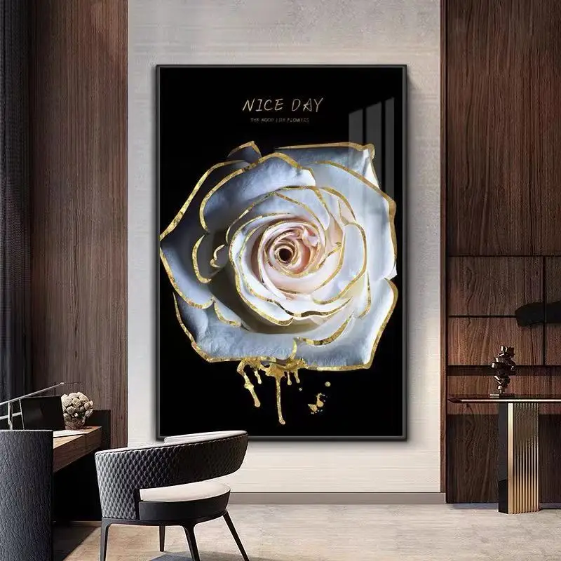 Современный минималистский фон для украшения стен гостиной с изображением белой розы, растений, цветов, крыльца, холста