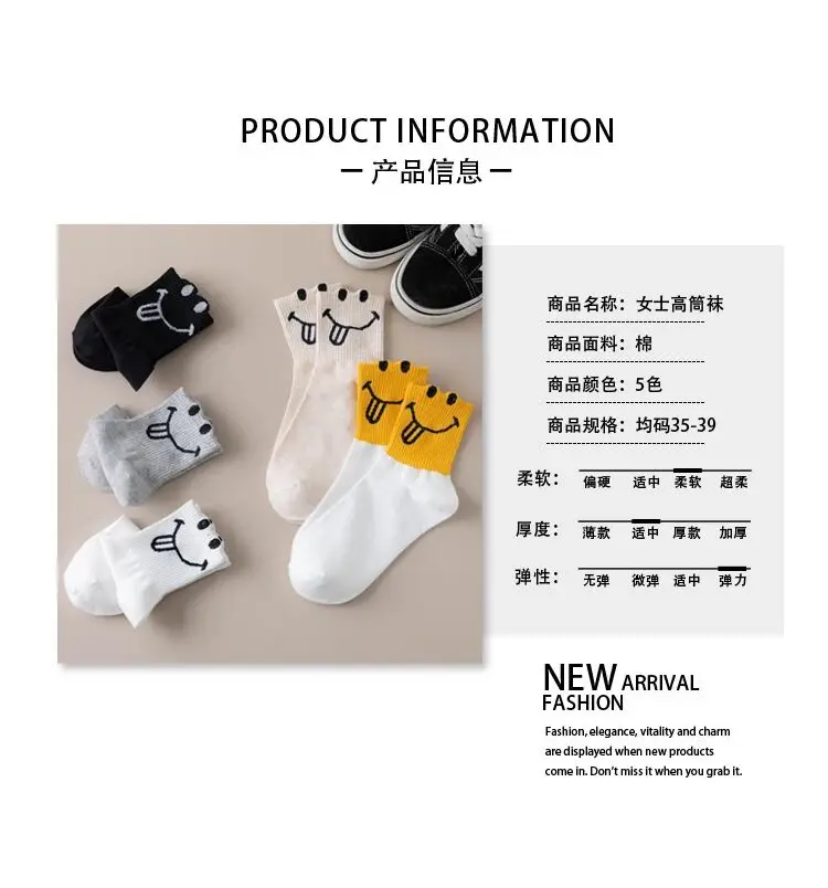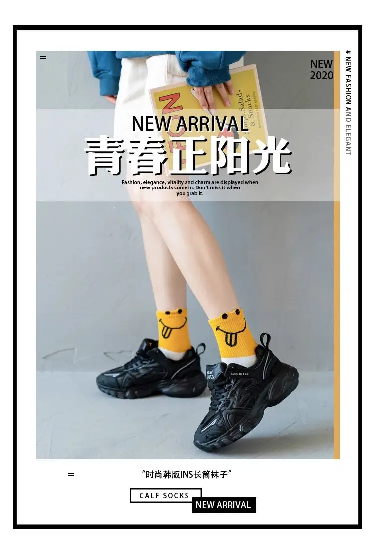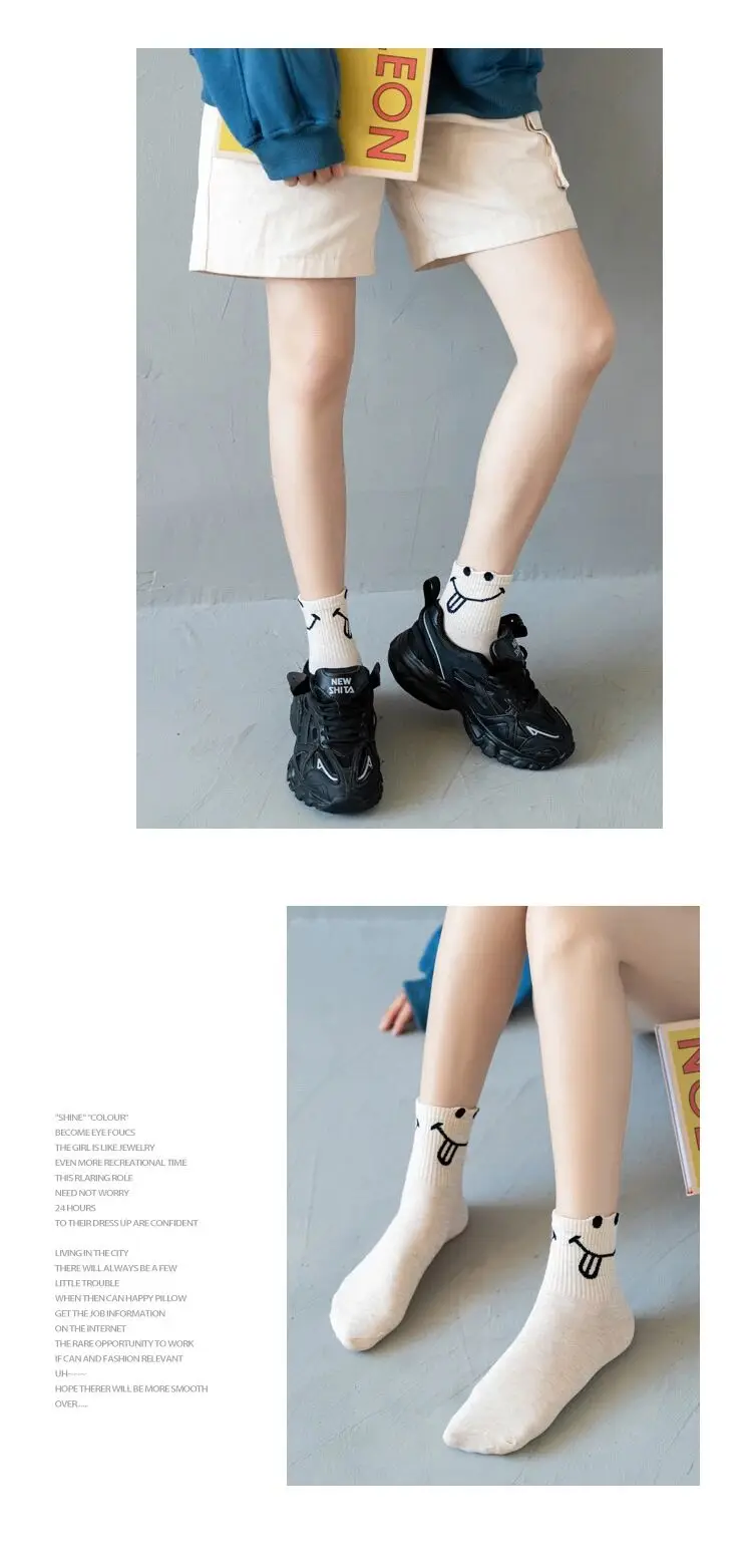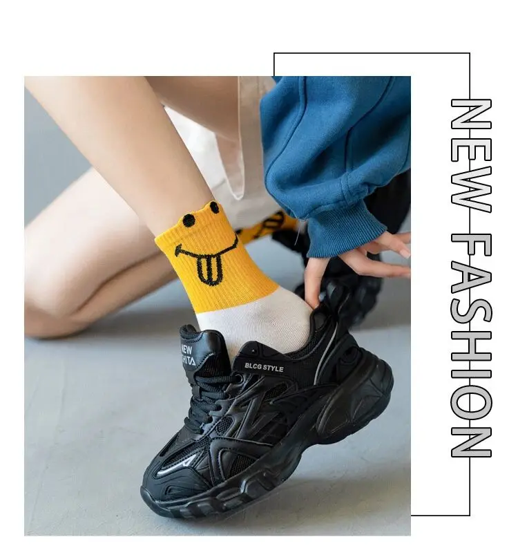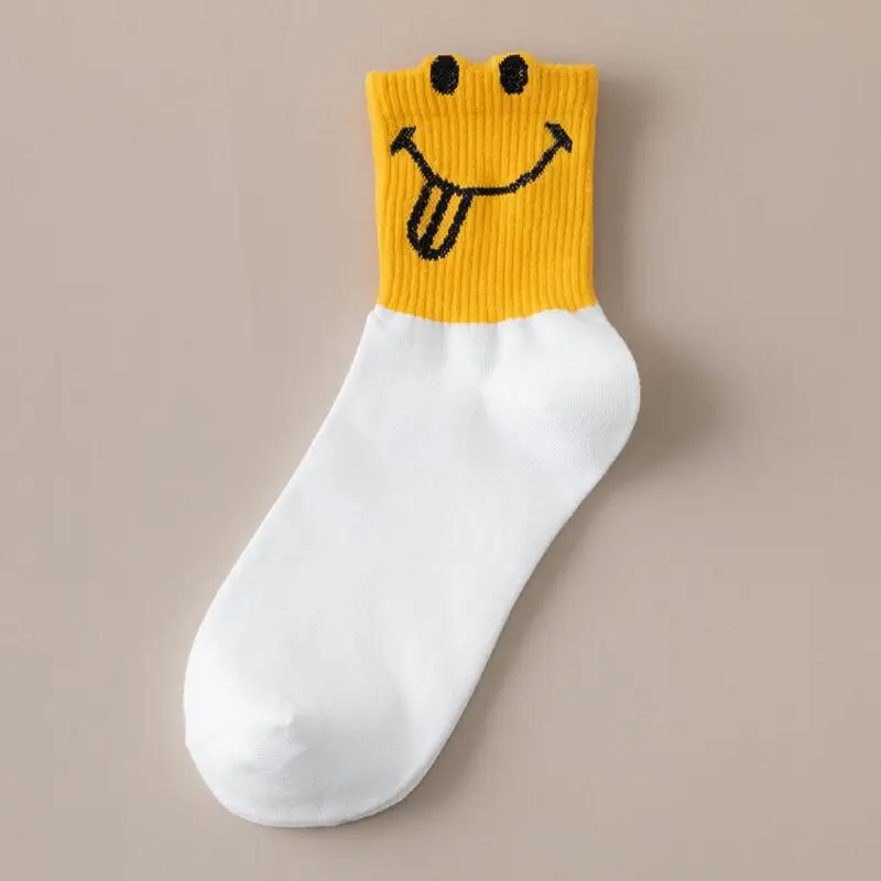 Весенне-летний модный тренд наличных, яркие цветные носки со смайликом, Индивидуальные женские носки со сборкой