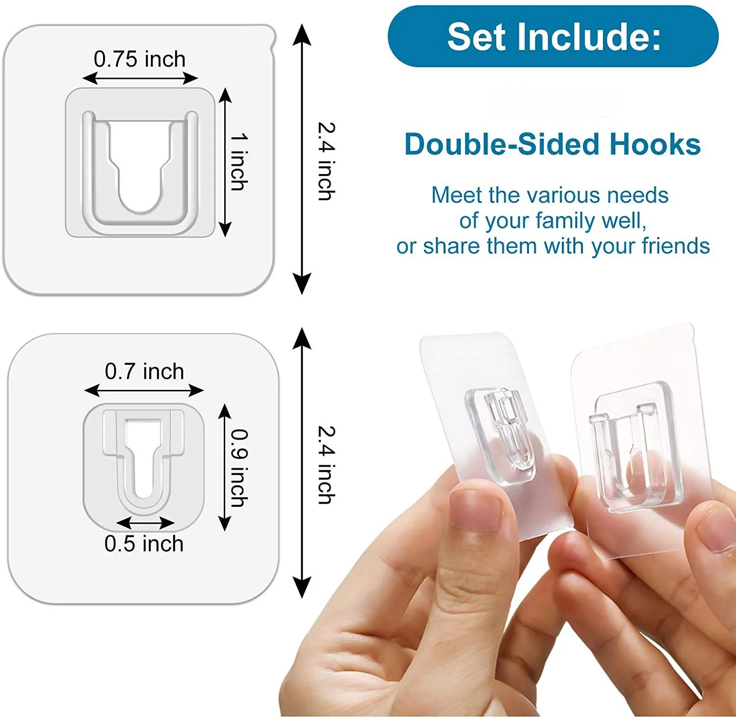 Крючки Настенные двусторонние на клейкой основе, прозрачные, на при...