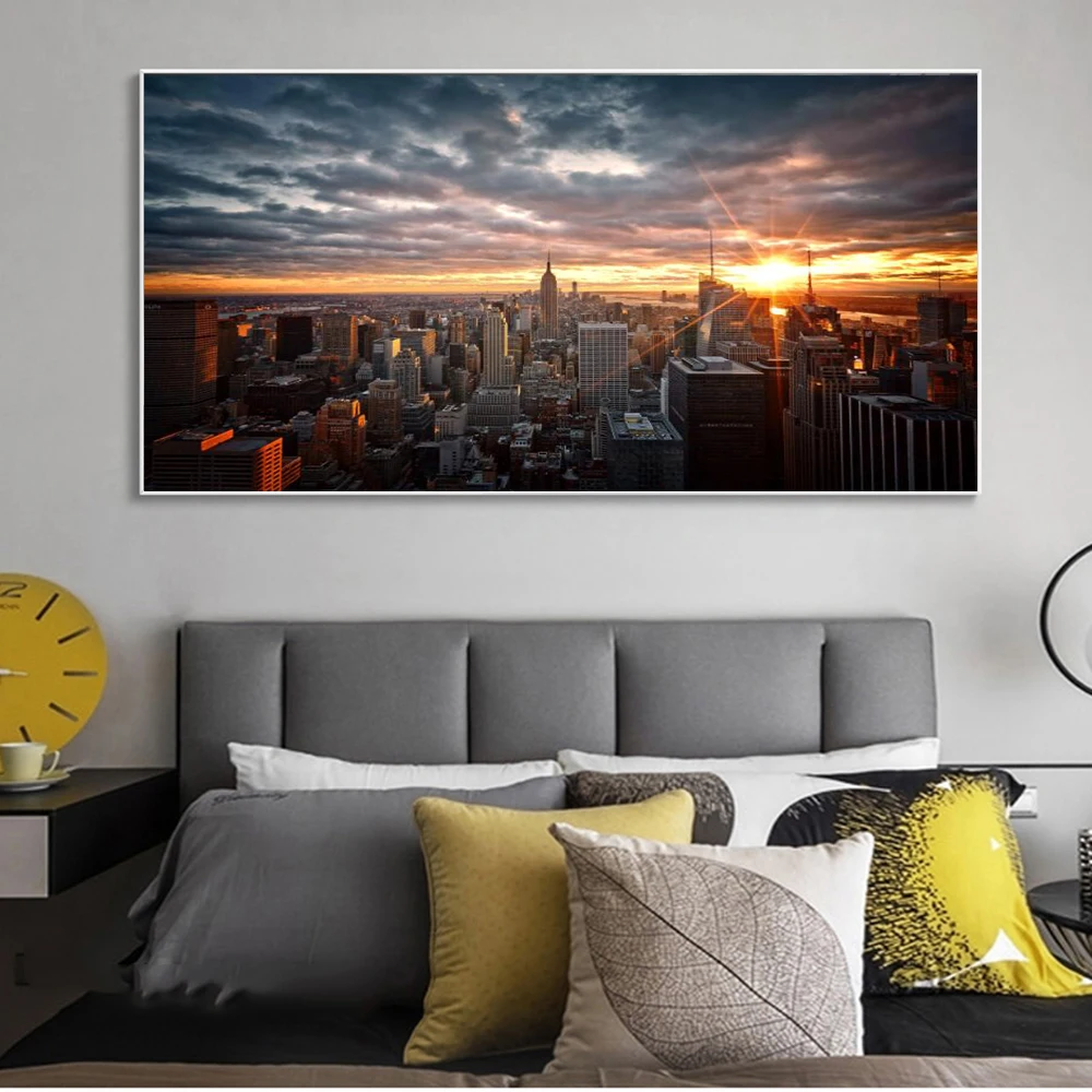 Холст с изображением заката, Нью-Йорка, художественные плакаты и принты холст, настенные картины, Skline of Manhattan, настенные картины для дома