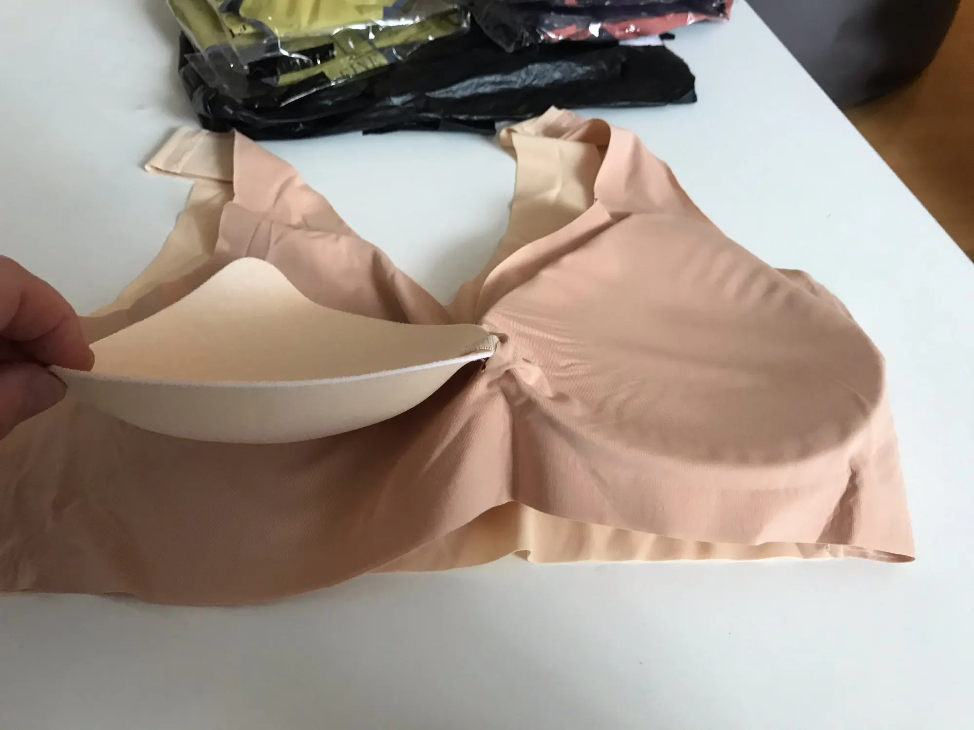 Убрала звезду за то,что в топ вложены чашечки размера А,а не В,как в описании. Топ отличный,к телу приятный,но чашечку нужно заменить. Если маленькая грудь,то эта чашечка её ещё больше приплюснула и получилось плоско.