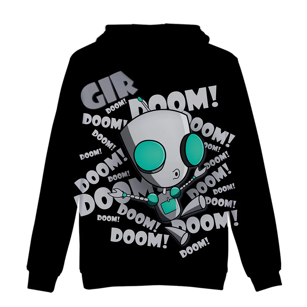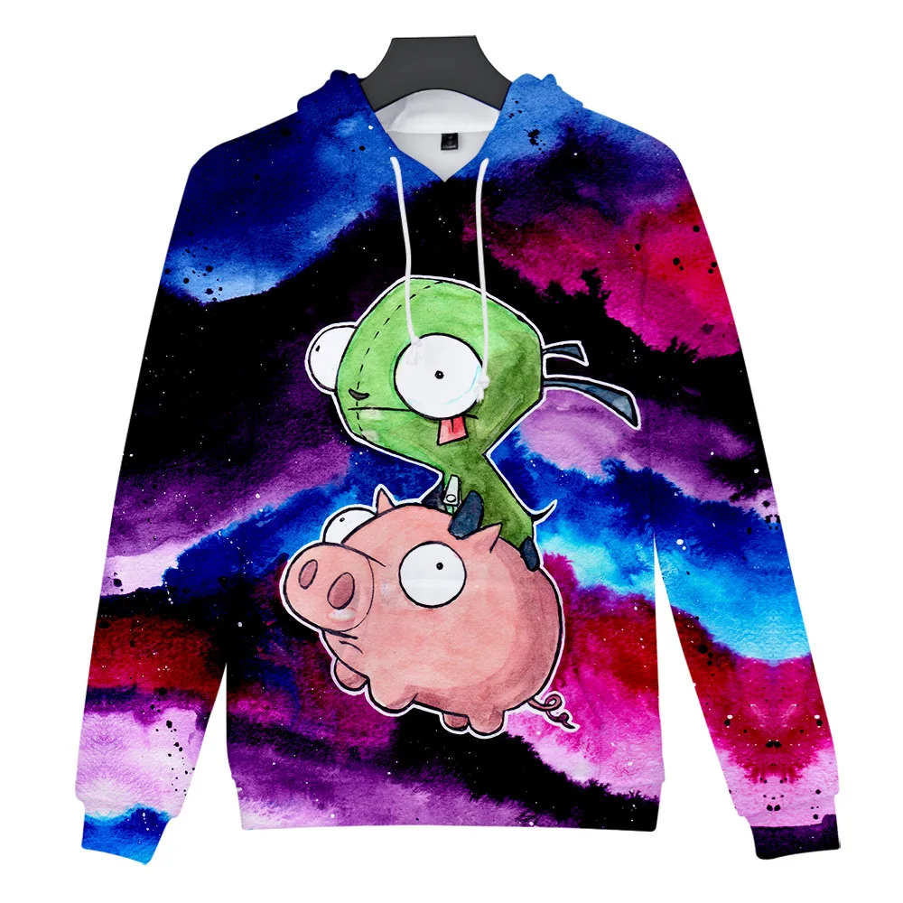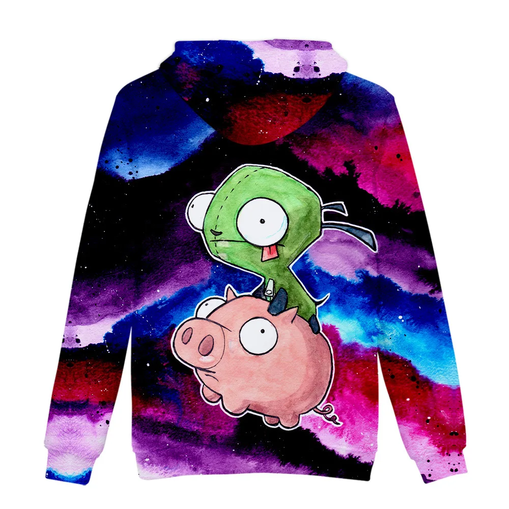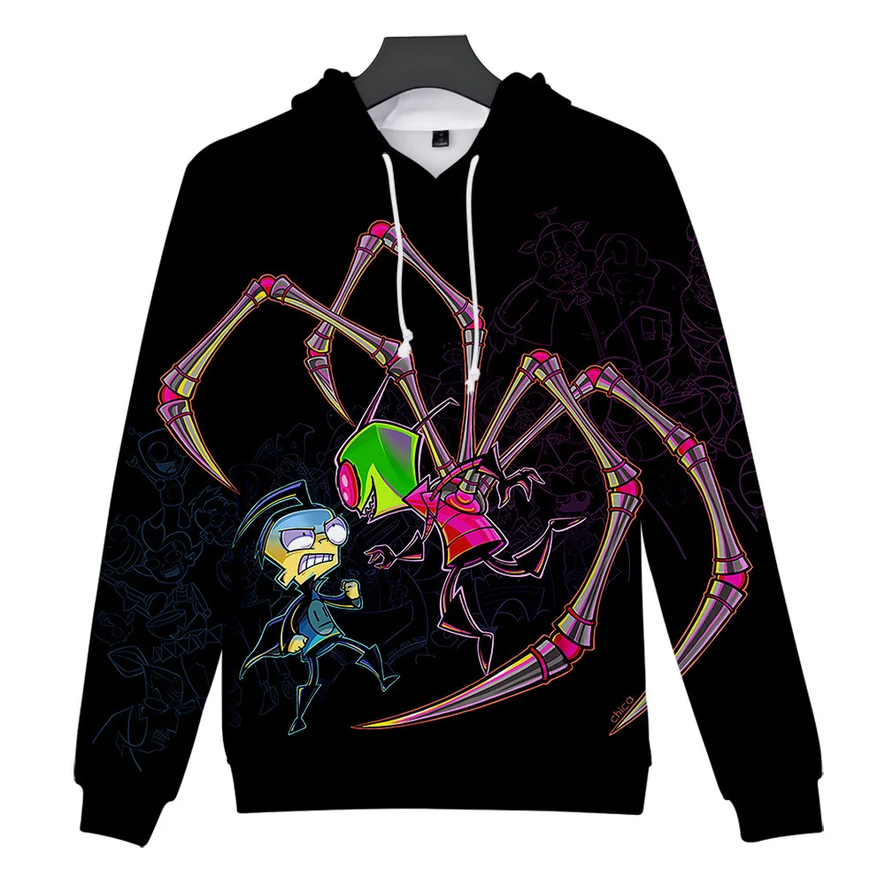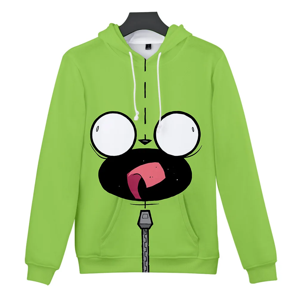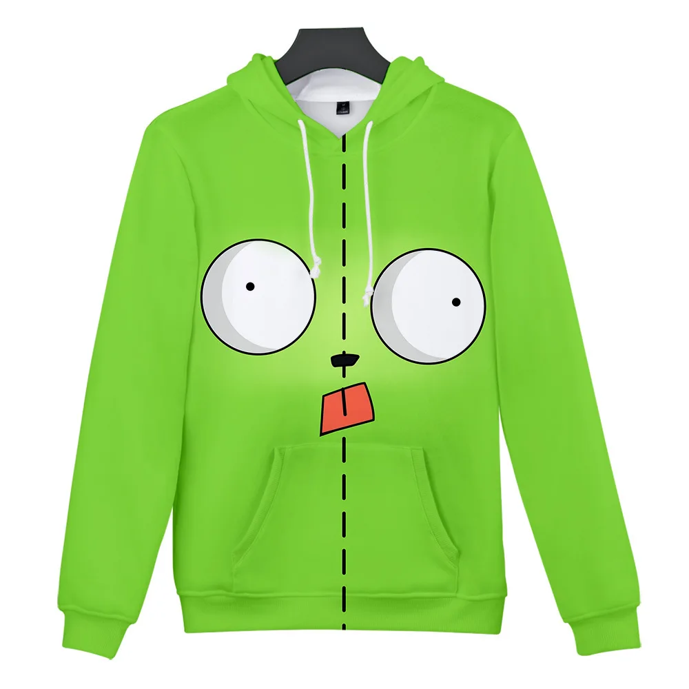 Толстовка с капюшоном Invader Zim для мужчин и женщин, свитшот с длинным рукавом, с 3D принтом, свободная куртка в уличном стиле для мальчиков