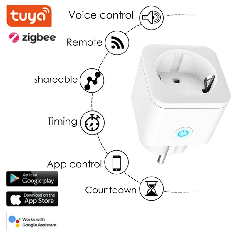 510 шт. Tuya ZigBee Smart Plug ЕС 16A Мощность монитор таймер розетка Smart Home Беспроводной совместимый с Alexa Google домашний помощник