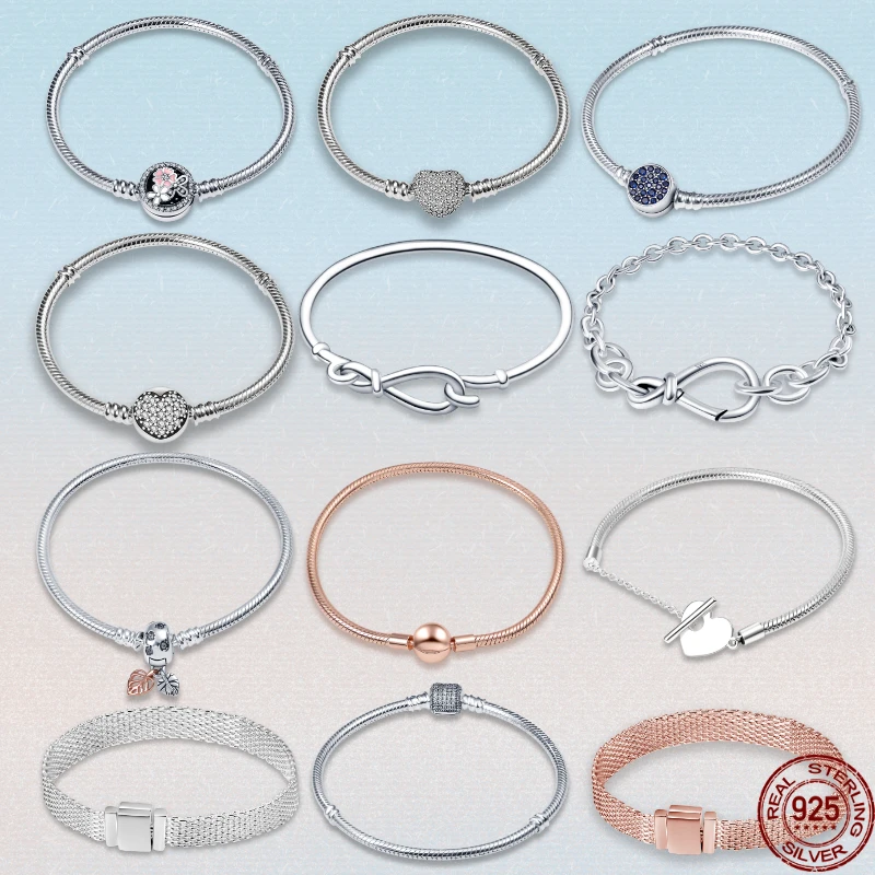 Лидер продаж, классический браслет из серебра 100% пробы с сердцем из серии 925, Подходит для pandora, оригинальные бусины, подвески сделай сам, ювелирные изделия, подарок для женщин