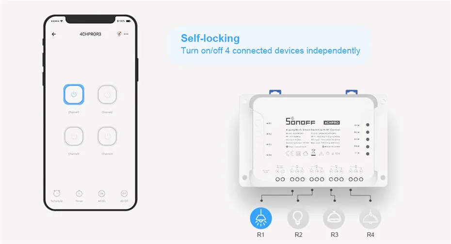 Sonoff 4CH PRO R3 4 Gang RF 433 МГц переключатель Поддержка блокировки самоблокирующийся инчинг 3 рабочих режима eWeLink приложение Alexa Google Home
