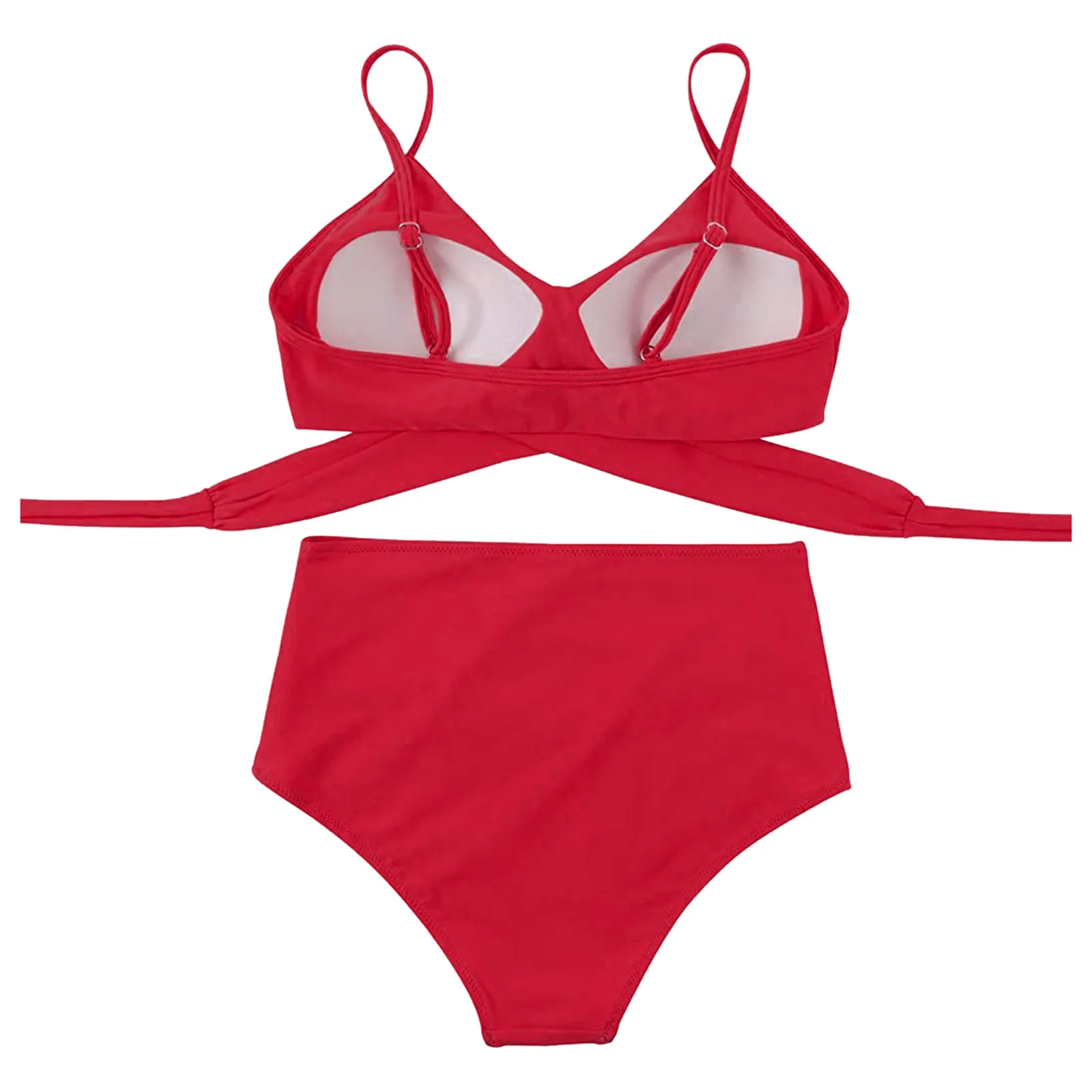 Женский купальник горячая распродажа, сексуальный однотонный купальник пуш-ап с высоким вырезом, на шнуровке, комплект бикини с лямкой на шее, купальник из двух предметов, сексуальное бикини 2021