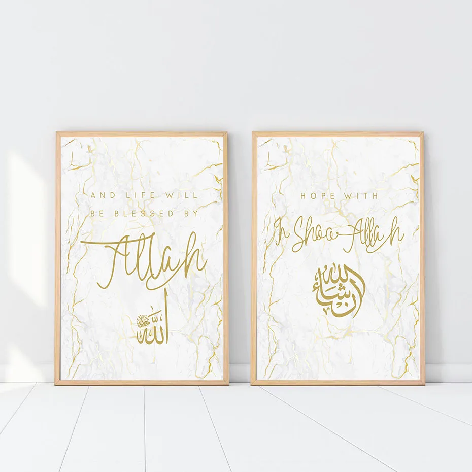 Белый мраморный камень, Золотая фотокартина, имя Аллаха, настенные ...