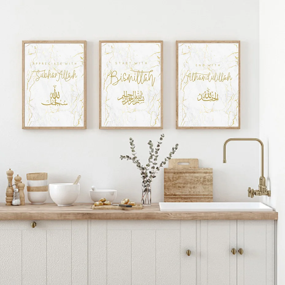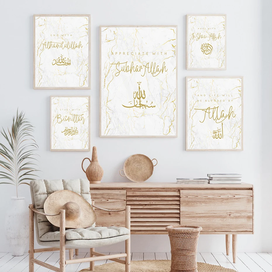 Золотой мраморный камень бисмилла Аллах мусульманская живопись на холсте сухан стена Аллаха Художественная печать плакат картина для гостиной домашний декор
