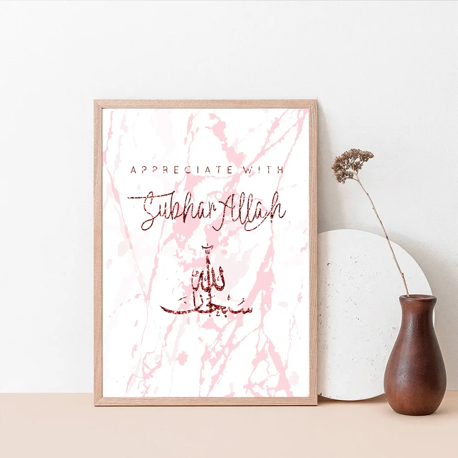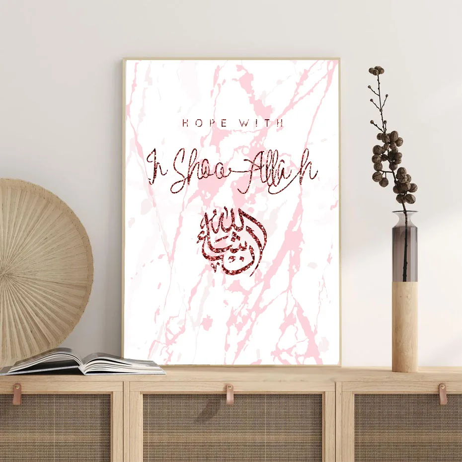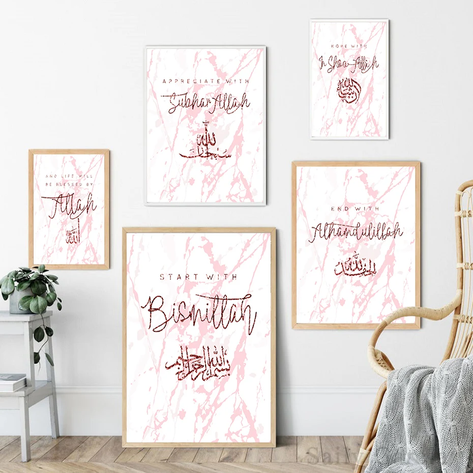 Розовая мраморная каменная мусульманская Картина на холсте надпись стена Аллаха Художественная печать постер картина для гостиной домашний декор