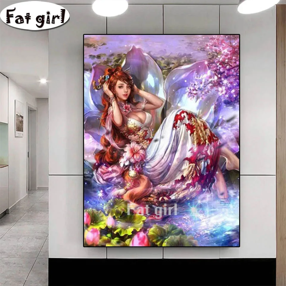 5D алмазная живопись Фэнтези эльф, Цветочная фея, квадратная Алмазная вышивка, мозаичная картина, вышивка крестиком, DIY мультфильм девушка Декор