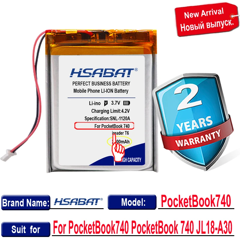 Для Покетбук 740 подошёл отлично. Заряжен был 50%. Книга работает, сразу обновилось ПО, ёмкость заявлено 2800, будем посмотреть. Доставка месяц в Киров. Рекомендую товар и продавца.