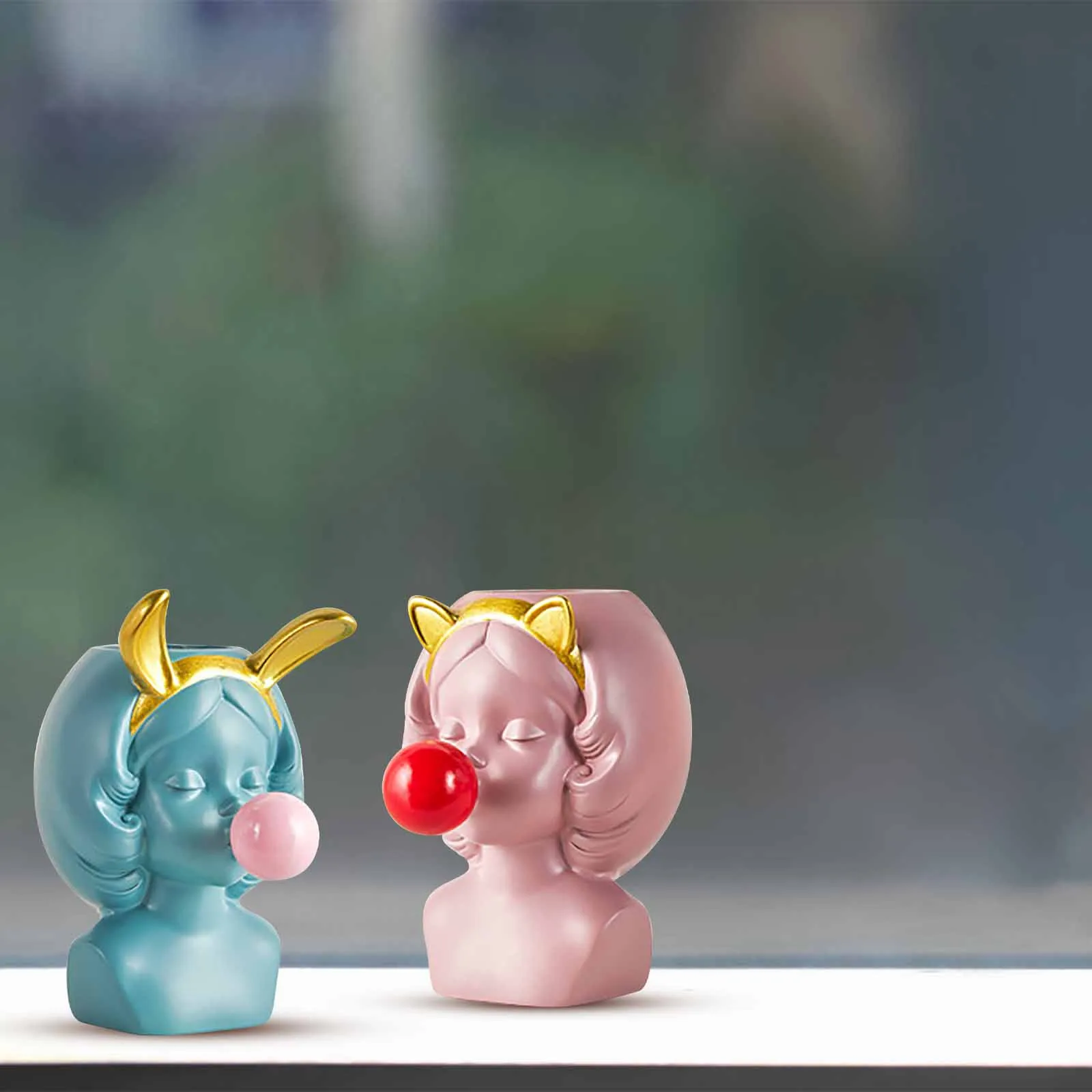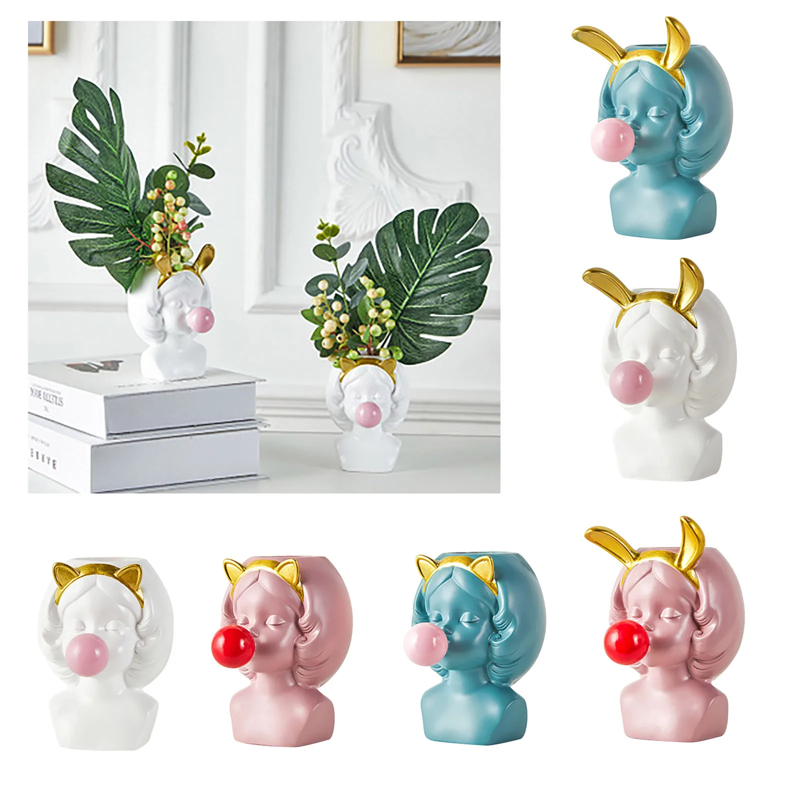 Милая девочка, суккулент из смолы, маленькая девочка, горшок для растений, горшок для дома, офиса, цветочный горшок для лица, декоративный горшок для растений, цветочный горшок для кактуса