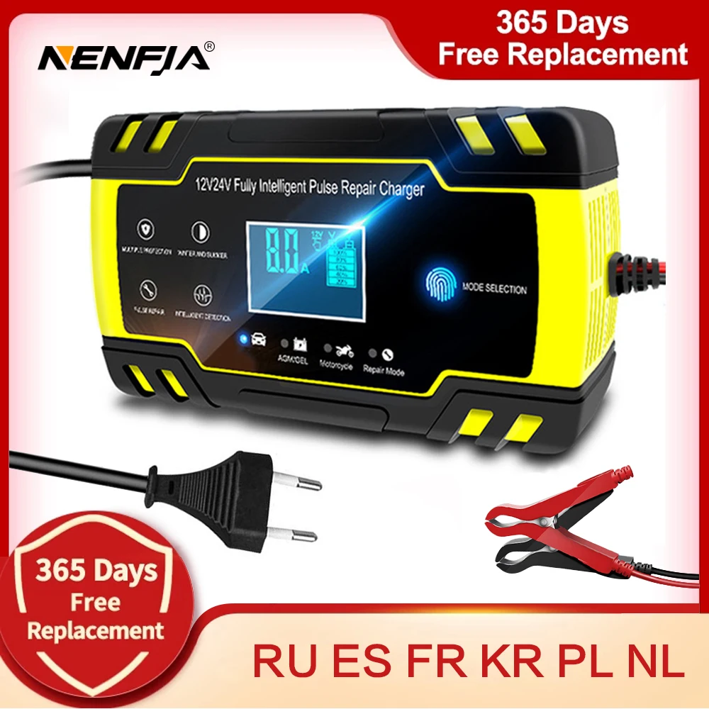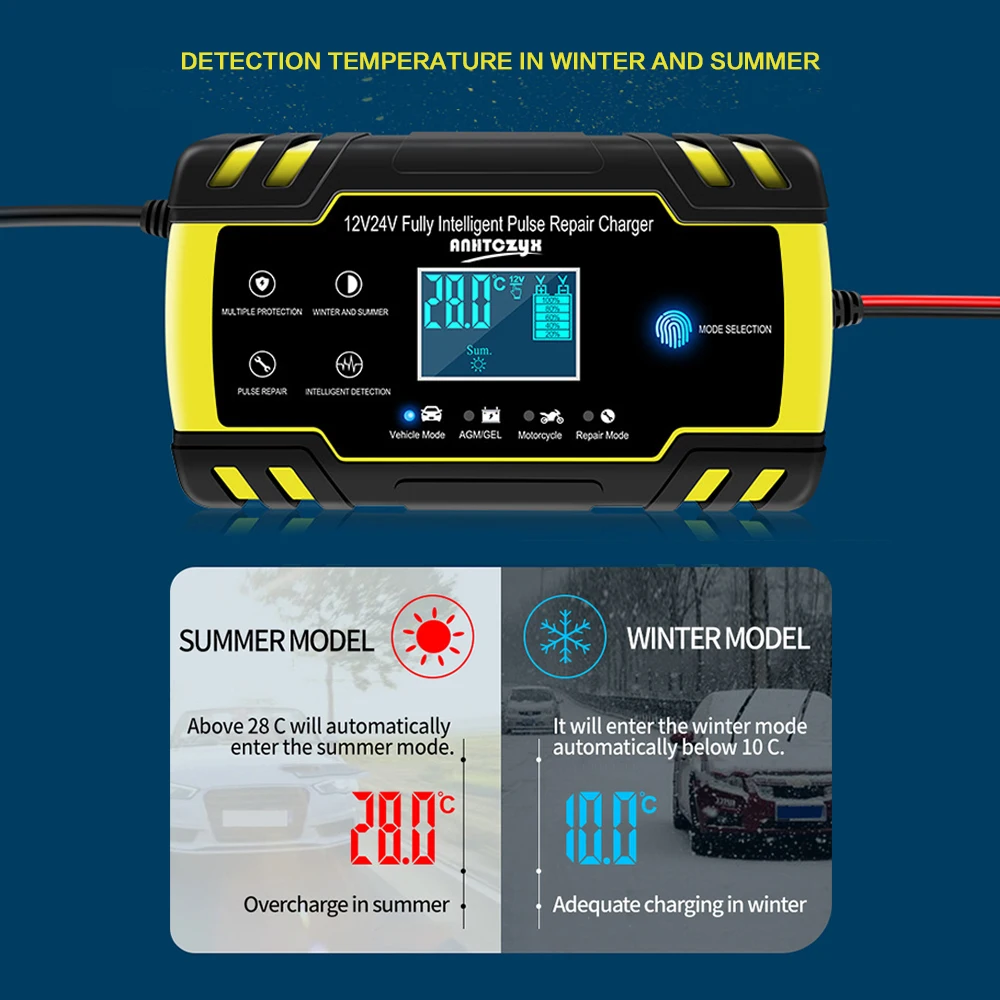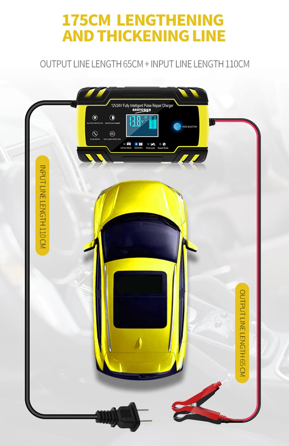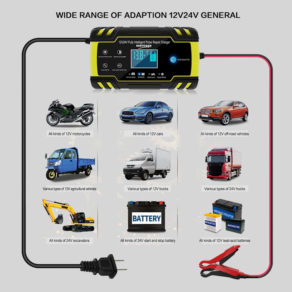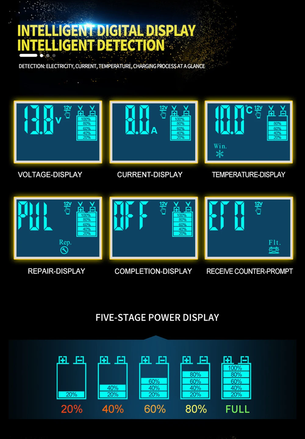 Зарядное устройство для автомобильных аккумуляторов, 1224 в, 8 а, с сенсорным экраном, для ремонта свинцово-кислотных аккумуляторов, с ЖК-дисплеем