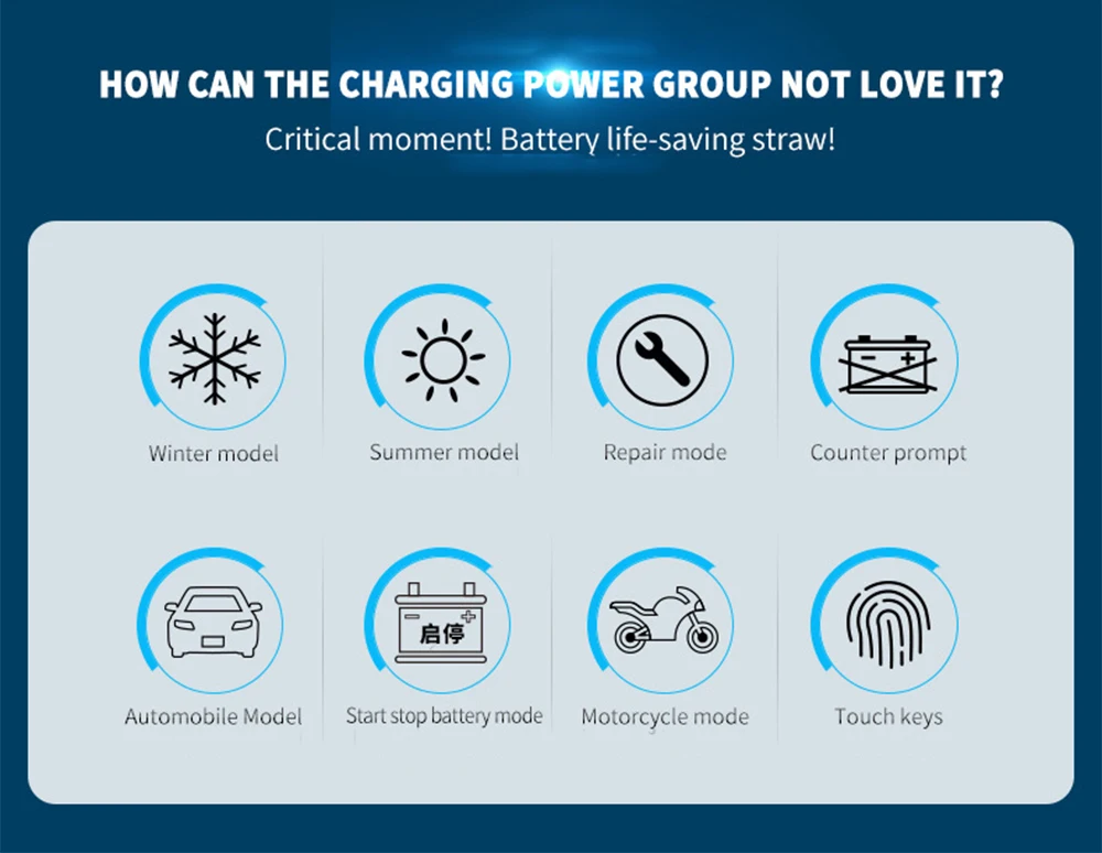 Несколько режимов: автомобиль/мотоцикл/AGM / GEL/свинцово-кислотный