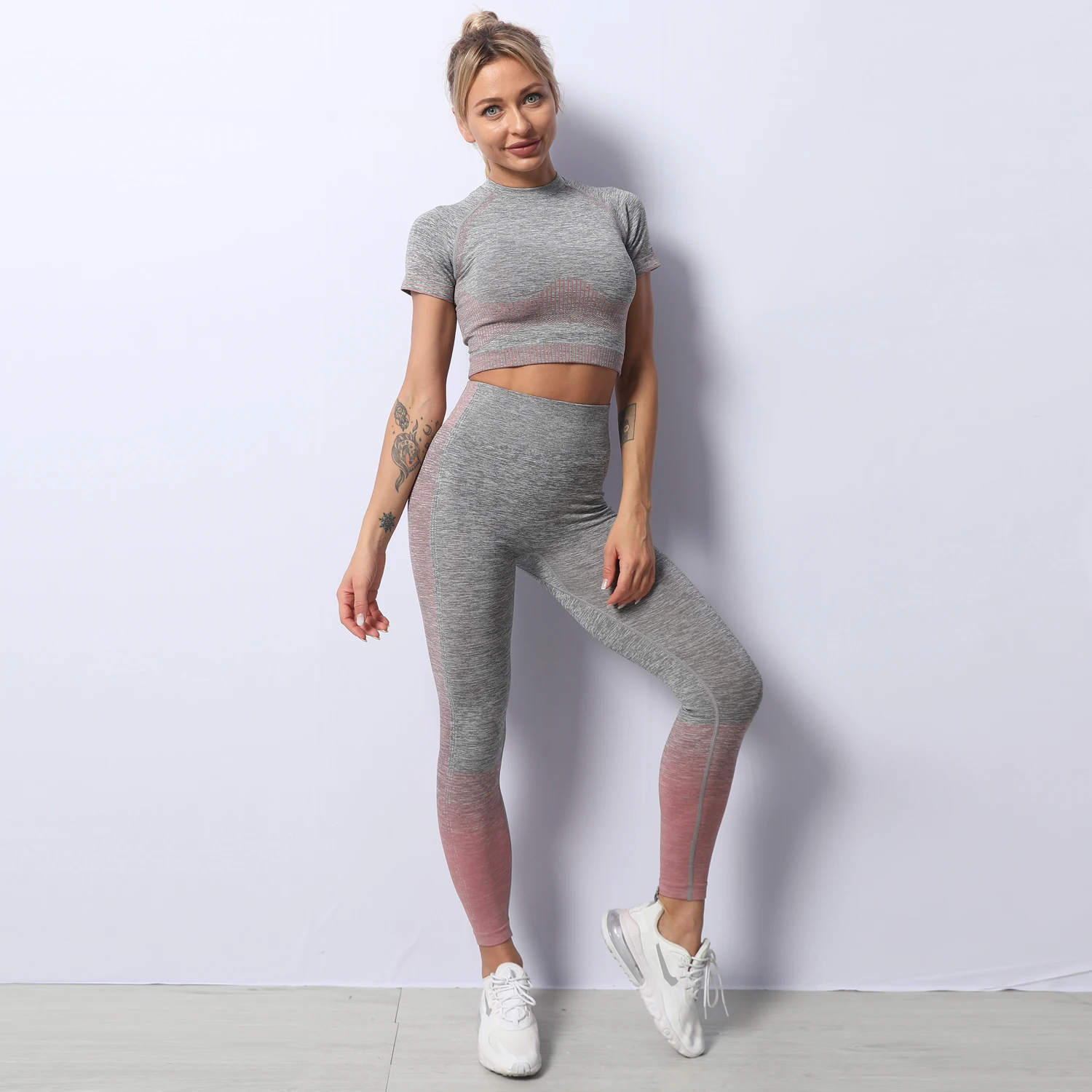 Комплект для фитнеса 2021, спортивный костюм , женские футболки с коротким рукавом, комплект для йоги, короткий топ, спортивная одежда для тренировок, леггинсы для спортзала, одежда для бега