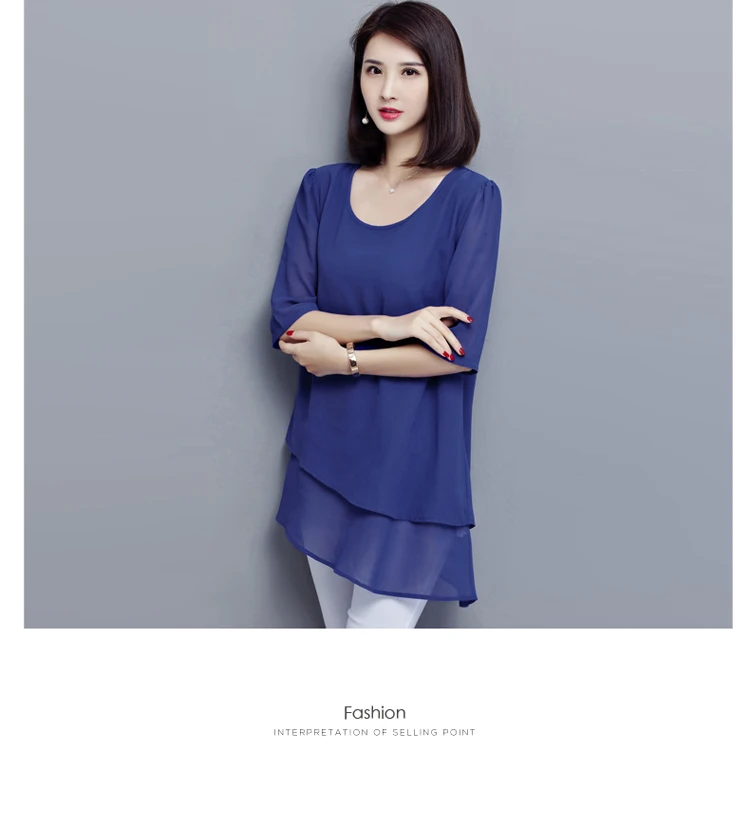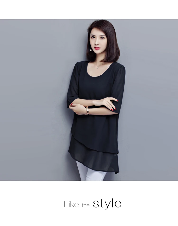 Женская длинная туника, черная винтажная шифоновая блузка в Корейском стиле, модель 5XL на лето, 2021