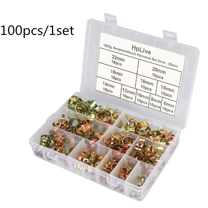 100 шт.компл. 6-22 мм Q673B вакуумная пружина, топливное масло, вода, процессор, шланг, зажим, труба для ленточного зажима, набор металлических крепежных элементов в ассортименте