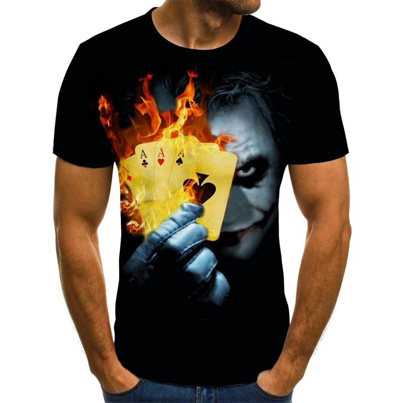 Новинка 2021, модная мужская футболка с 3d принтом Джокера, забавная крутая летняя одежда в стиле рок, хип-хоп, с коротким рукавом светильник лые Топы большого размера для мальчиков
